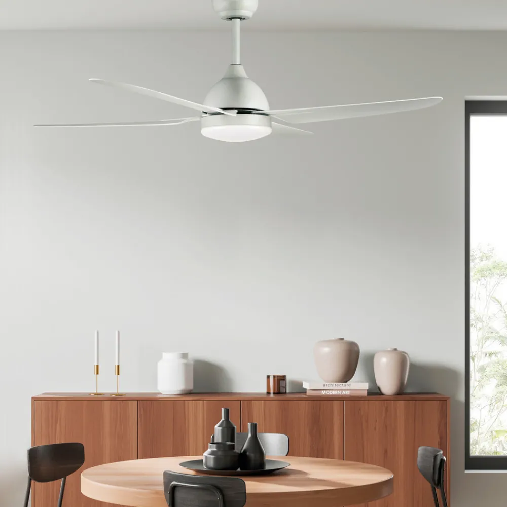 LED-takvifte Barine med fjernkontroll og DC-motor, dimbar, CCTTakviften Barine tilbyr mange innstillingsmuligheter både når det gjelder ventilasjon og belysning. For dette formålet er en fjernkontroll inkludert i leveringsomfanget. Den hvitlakkerte og metalliske kroppen til Barine kompletteres av fire hvite plastblader. Inkludert fjernkontroll (batterier inkludert) og veggbrakett.FunksjonerLysets intensitet kan dimmes kontinuerlig, og fargetemperaturen kan også justeres via den medfølgende fjernkontrollen. Seks hastighetsnivåer er tilgjengelige for viften, og en reverseringsfunksjon kan også velges. Om vinteren bidrar sistnevnte til å fordele luften som varmes opp av oppvarmingen optimalt i rommet via taket og kan dermed bidra til å spare energikostnader. Lys og vifte kan kobles separat via fjernkontrollen, og timeren kan også stilles inn på denne måten.Tekniske data- maks. effekt DC-motor: 32 W- maks. luftsirkulasjon: 166 m³ / min- timer justerbar: 1 time, 3 eller 6 timerHastighet og støynivå per trinn:- 98 o / min. (42 dB)- 131 o/min. (48 dB)- 160 o/min. (49 dB)- 187 o/min. (57 dB)- 219 o/min. (58 dB)- 255 o/min. (65 dB)Spesielle funksjoner – med stillegående likestrømsmotor – egnet for soverom