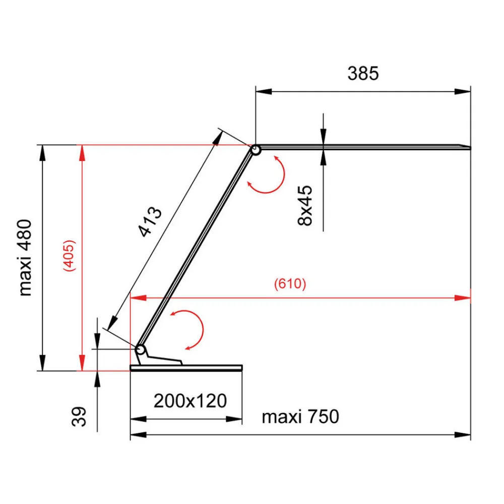 - Sokkel – lengde 12 cm, bredde 20 cm; bredde på skjerm 38,5 cm