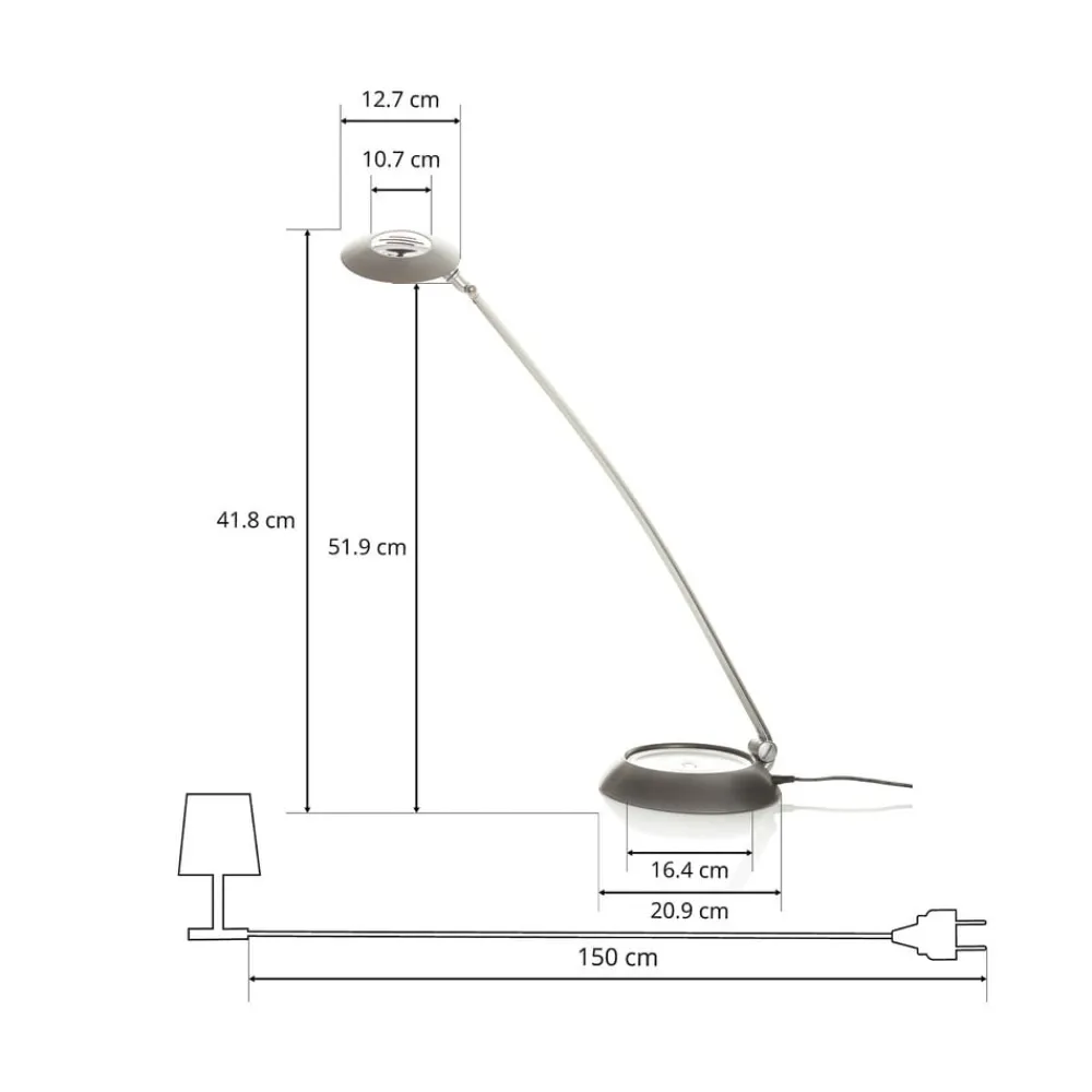 Forever bordlampe, justerbar i to posisjoner, avgir sterkt LED-lys Forever bordlampe kan brukes på en rekke forskjellige måter i hele hjemmet: Ved hjelp av den toveis justerbare lampearmen kan lyset rettes nøyaktig dit det trengs, enten det er til skrivebordsarbeid eller til vanskelige manuelle oppgaver. Lyset kan justeres til ønsket intensitet ved hjelp av en berøringsbryter. – Lysfarge dagslys – 4 000 Kelvin – 642 lumen