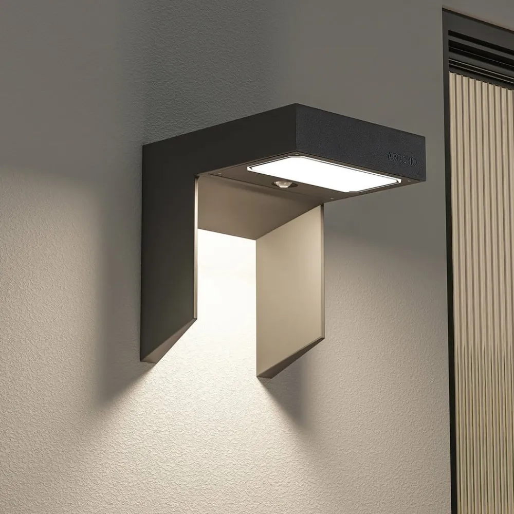 Dynorma LED utendørs vegglampe i mørk grafitt med sensor, eksklusiv design