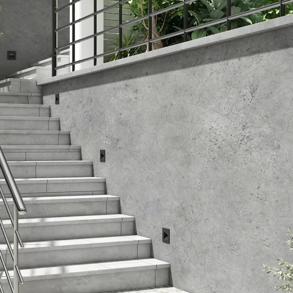 Zamo kantet innfelt vegglampe i aluminium for innendørs eller utendørs bruk Zamo er en enkel innfelt vegglampe som er perfekt til å lyse opp en trapp. Den er laget av aluminium og har en elegant svart finish. Kroppen forsvinner inn i veggen under installasjonen, og etterlater bare et kantet element på overflaten. Zamo kan utstyres med passende lyskilder, og du kan fritt velge lysfarge. Kapslingsgraden IP65 gjør den innfelte vegglampen beviselig beskyttet mot støv og vannstråler, noe som betyr at den også kan brukes utendørs.