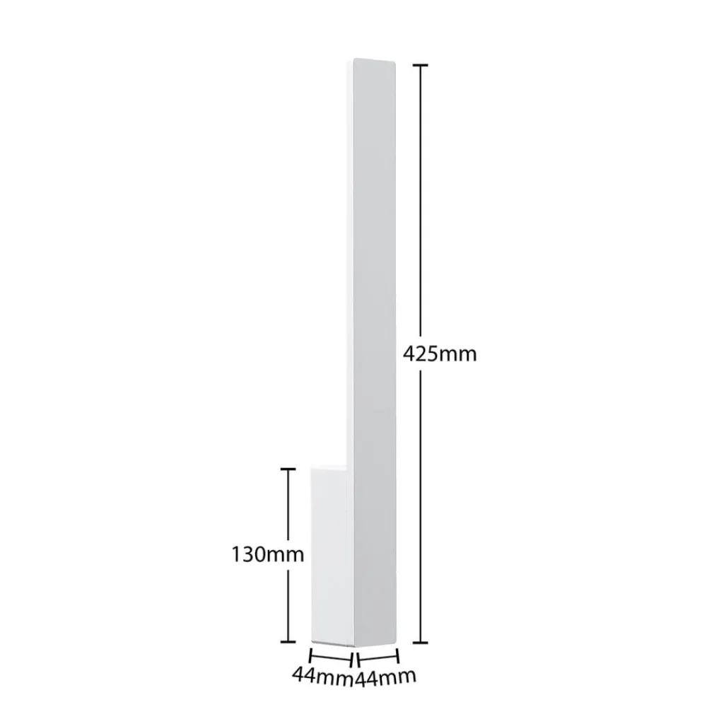 Slimline Ivano LED-vegglampe i hvitt Ivano LED-vegglampe kombinerer et moderne, slankt utseende med et diskret fargevalg. Armaturhuset består av en veggbrakett og et slankt stag i aluminium. LED-lampene er plassert slik at de sitter bak stiveren og lyser mot veggen. Denne interessante plasseringen av lyset gjør at Ivano LED-vegglampen omsluttes og fremheves av sitt eget lys. Det varmhvite lyset fra LED-lampene skaper en behagelig atmosfære og egner seg godt som aksentbelysning. Armaturens kompakte størrelse gjør den også til en perfekt følgesvenn når det gjelder belysning av korridorer. Den er mye mer plassbesparende enn utstikkende vegglamper og passer perfekt inn i moderne innredningsstiler med sitt enkle utseende.