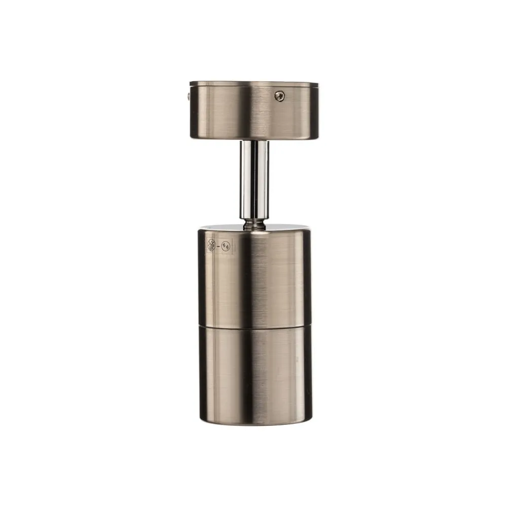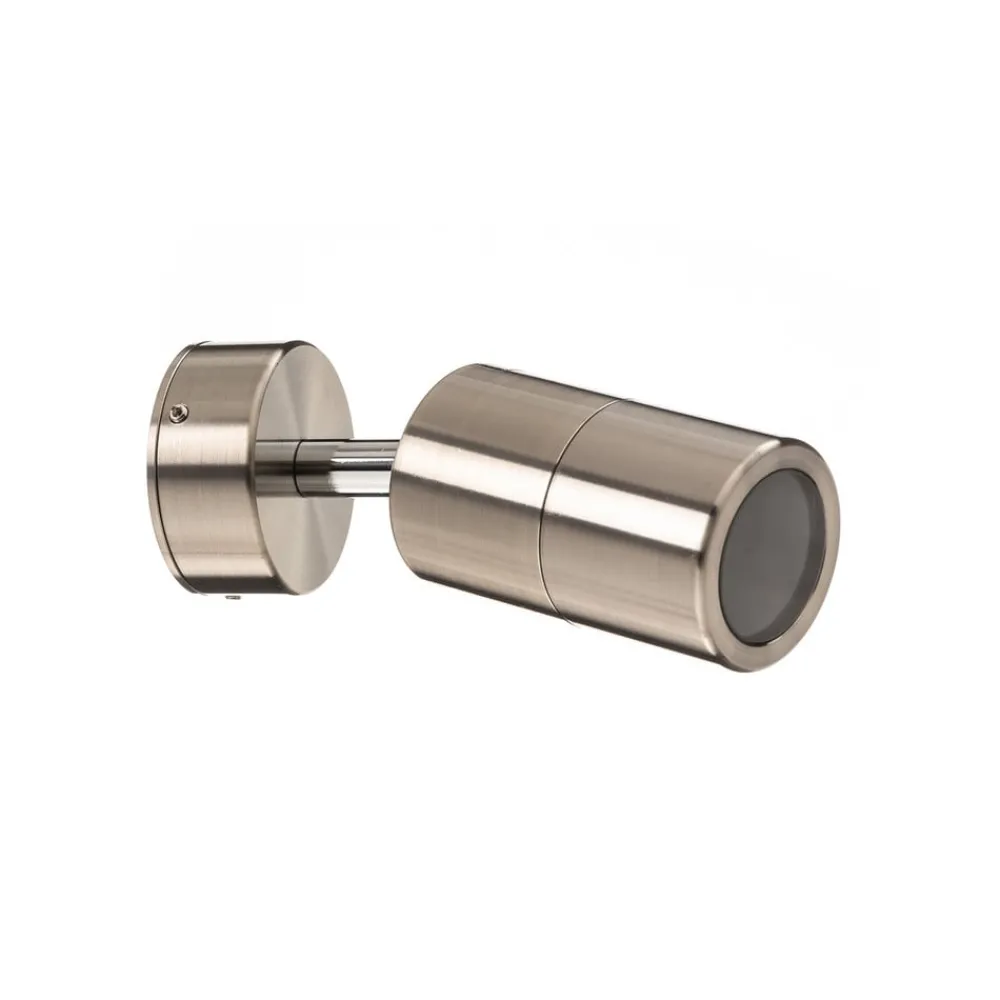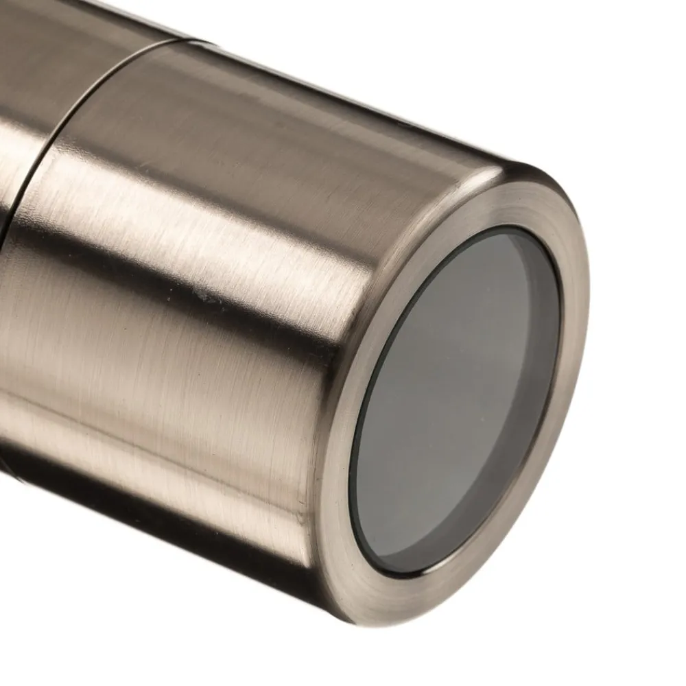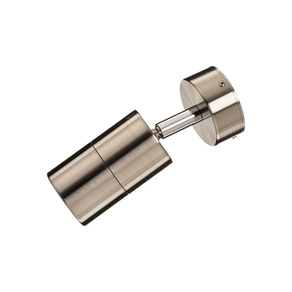 Justerbar utendørs vegglampe Kalel i rustfritt stål i V4A-kvalitet med sylindrisk lampehode Kalel imponerer med sitt tidløse utseende og er en utendørs vegglampe med høy kapslingsgrad som har et bevegelig lampehode som kan roteres og svinges for å rette lyset optimalt. Hele huset til utelampen for veggmontering er laget av rustfritt V4A-stål av høy kvalitet og kompletteres av robust herdet glass over pæren. Dette betyr at vegglampen kan brukes utendørs uten å nøle, og den vil til og med vare lenge i et miljø nær sjøvann. Armaturen passer godt til moderne arkitektur, men har også en viss tidløshet med sin enkle stil og egner seg til en rekke bruksområder rundt huset, der armaturen gir passende fokuspunkter for orientering når det allerede har blitt mørkt ute.