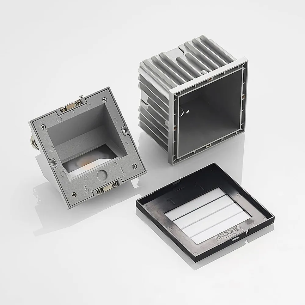 Zamo innfelt LED vegglampe med raster for yttervegg, med glassdeksel Zamo er en moderne innfelt LED vegglampe i aluminium med glassplate og svart overflatefinish. Den har et kvadratisk, rasterformet deksel som kan integreres på en flott måte i ulike miljøer. Armaturen kommer best til sin rett når den installeres i en rekke med flere armaturer. Takket være kapslingsgraden IP65 kan den også lyse opp uteområder med sitt innbydende, varmhvite lys i lang tid. De fastmonterte LED-lampene er også økonomiske når det gjelder strømforbruk.