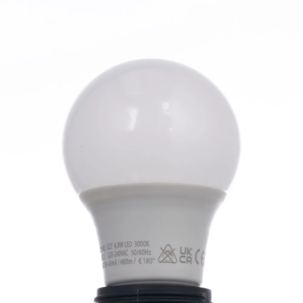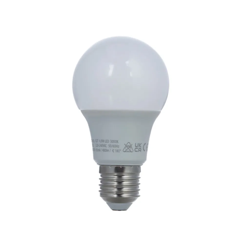 LED-lampe E27 A60 4,9 W med opalt deksel og varmhvit lysfarge Som erstatning for en 40 W halogenlampe kan denne E27 LED-lampen brukes på en rekke områder. Polykarbonatpæren er robust og avgir varmhvitt lys – ikke dimbar