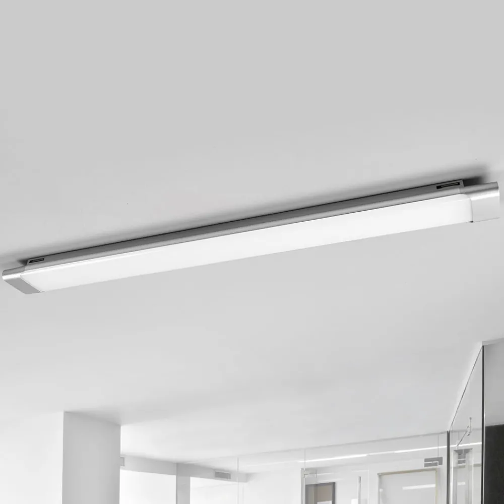 Langstrakt Vinca LED-taklampe med jevnt lysbilde og sterk lysstyrke Vinca er en førsteklasses taklampe til kontoret eller et nyttig tilskudd til kjøkkenet hvis arbeidet som skal utføres der, må gjøres i godt lys. Aluminiumshuset har en kantet grunnform, men har avrundede sider som myker opp utseendet. Huset kompletteres av en skjerm i hvit polykarbonat som sitter over LED-lampene og gir et jevnt lys.
