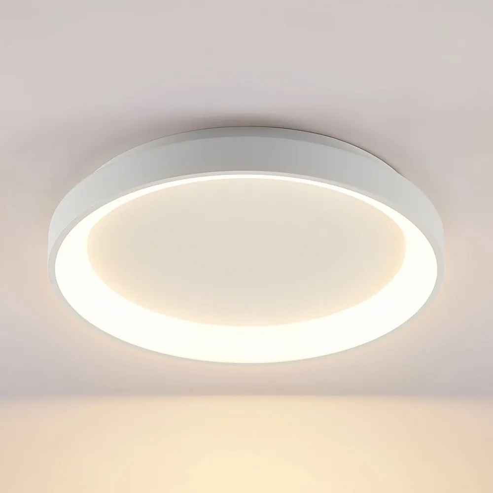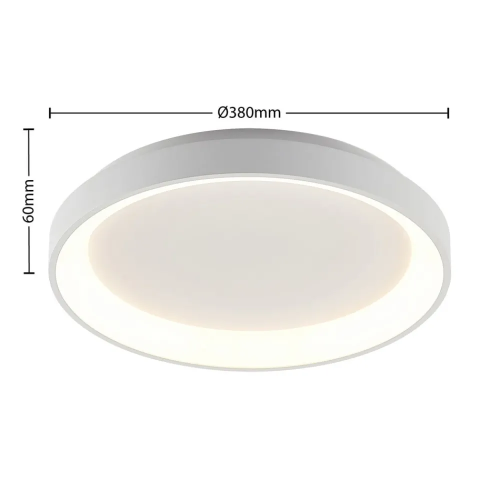 Rund, hvit LED-taklampe Vivy med god lysstyrke Vivy kan absolutt ses på som en nytolkning av en klassisk kjøkkenlampe, noe som hovedsakelig skyldes den runde formen og det ringformede lysutslippet. Taklampen er imidlertid spesielt effektiv sammenlignet med tidligere lamper og gir et sterkt lys, selv om strømforbruket er relativt lavt. Dette er fordeler som alltid er velkomne i både private og kommersielle miljøer. Designet med den runde formen og den hvite overflaten ser enkelt og moderne ut – en tiltalende LED-taklampe til mange formål!