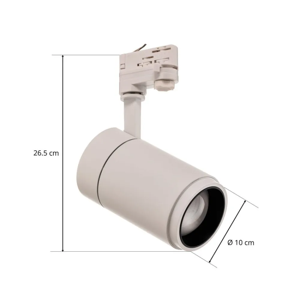 Med justerbart lysutbytte – Nanna LED-skinnespotlight Nanna skinnespotlight i hvit aluminium har et individuelt justerbart lampehode som ikke bare kan roteres og svinges, men som også har en variabel lysvinkel. Linsen kan enkelt varieres fra en smal 15° til en bredere 60° ved å vri på lampehodet. Det er små markeringer på spotlighten for korrekt innstilling av vinkelen. Nanna egner seg som LED-spotlight for 3-fasede systemer og kan for eksempel brukes til butikkbelysning i næringsbygg. Avhengig av om et objekt skal belyses spesielt eller om et helt område skal belyses, kan Nanna skinnespotlight gi lys i riktig vinkel. Med en CRI-verdi på over 90 oppnås en svært god fargegjengivelse, slik at fargetonene gjengis så naturtro som mulig med Nanna skinnespotlight.
