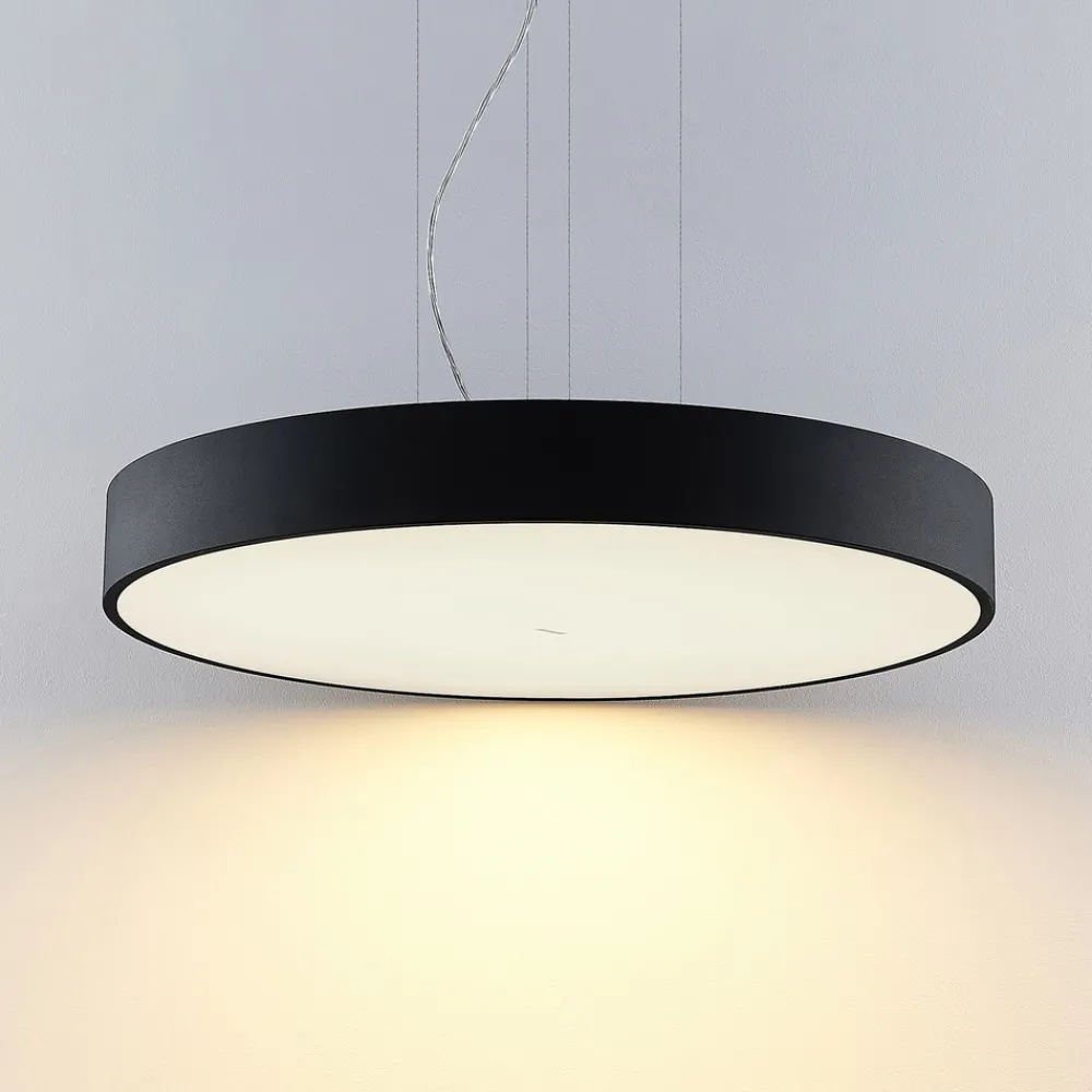 Stor, sort LED pendellampe armatur Noabelle i rund form, CCT endring via DIP