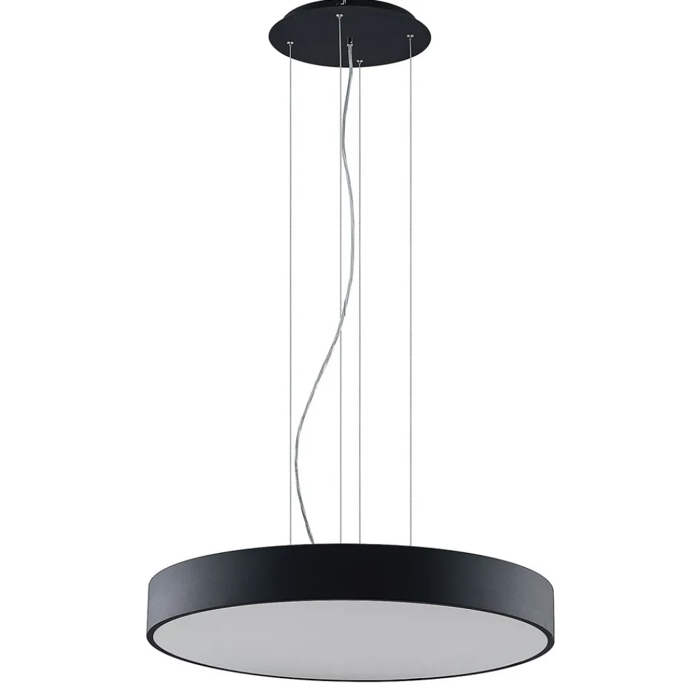 Noabelle henger fra taket på filigrantau og kombinerer funksjonalitet med en enkel, men stilig design. pendellampe har ganske store dimensjoner og en veldig god lysstyrke, slik at den også kan belyse større rom og områder. Strømforbruket holder seg på et relativt lavt nivå, slik at man kan snakke om en effektiv armatur som teknisk sett er helt oppdatert. Dette skyldes selvfølgelig den moderne LED-teknologien, der nettopp disse punktene er tydelig blant fordelene, og som også er preget av lang levetid og lysvarighet. Den minimalistiske designen passer like bra i oppholdsrom som i kommersielle miljøer, og det at du kan justere lysfarge under installasjonen øker bruksmulighetene. Varmhvitt lys virker spesielt hjemmekoselig, mens hvitt lys er bedre egnet for konsentrert arbeid. Spisebord og arbeidsbord er gode bruksområder for den store, runde LED-pendellampe med svart metallskjerm og den hvite plastdiffusoren , som muliggjør jevnt lys .