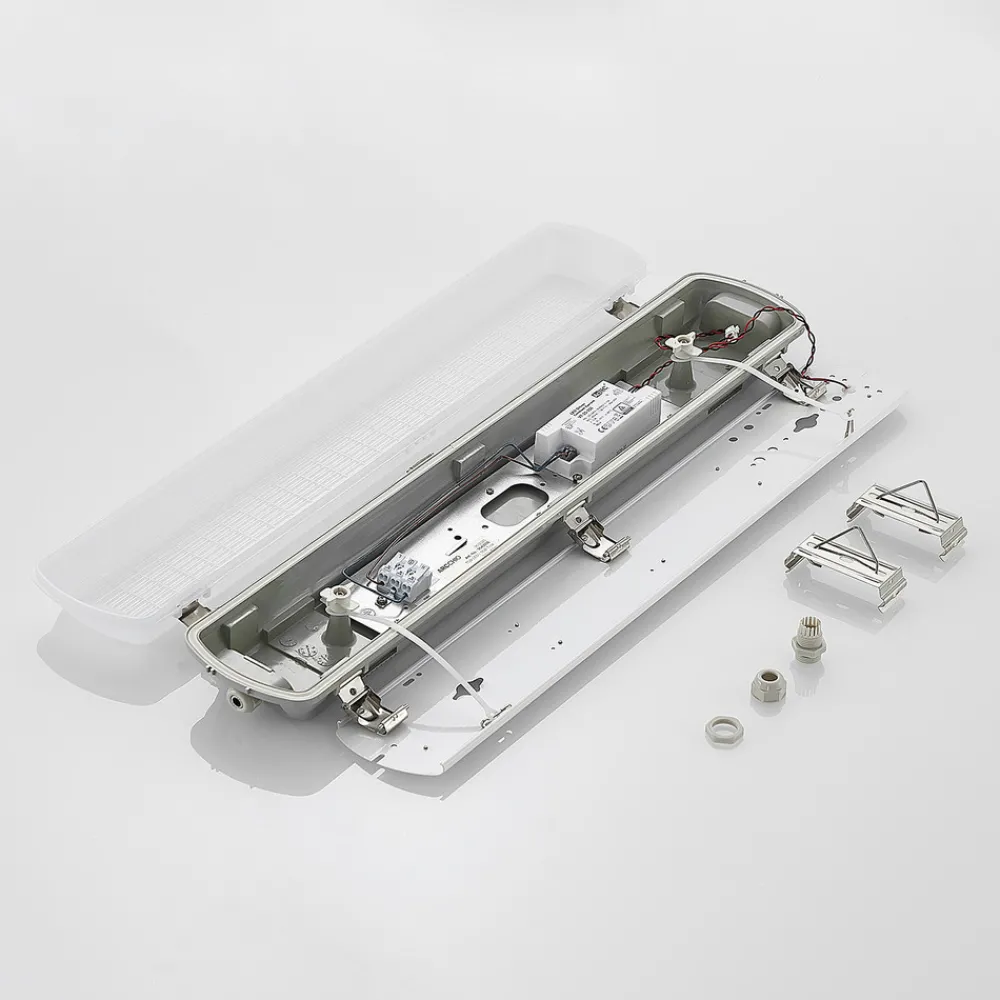 Spesielt i den kommersielle sektoren eller i fuktige rom rundt huset og gården, for eksempel garasjen eller en kjeller, er denne LED-badekararmaturen en virkelig ressurs når det kommer til skarp belysning. Med den høye kapslingsgrad kan smuss og fuktighet knapt påvirke diffusorarmaturen, og den egner seg derfor også i de rom hvor luftfuktigheten noen ganger kan være høyere. LED-ene viser seg å være spesielt effektive og sikrer tilstrekkelig lysstyrke med relativt lavt strømforbruk. Lyset deres er flimmerfritt og før installasjon kan du velge mellom tre lysfarger som kan velges med den integrerte DIP-bryteren. Takket være den høye graden av støtmotstand er Rao en av de spesielt robuste lysene.