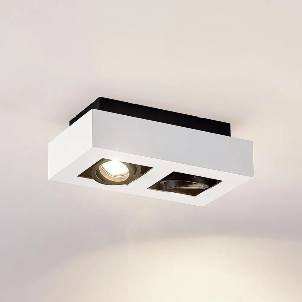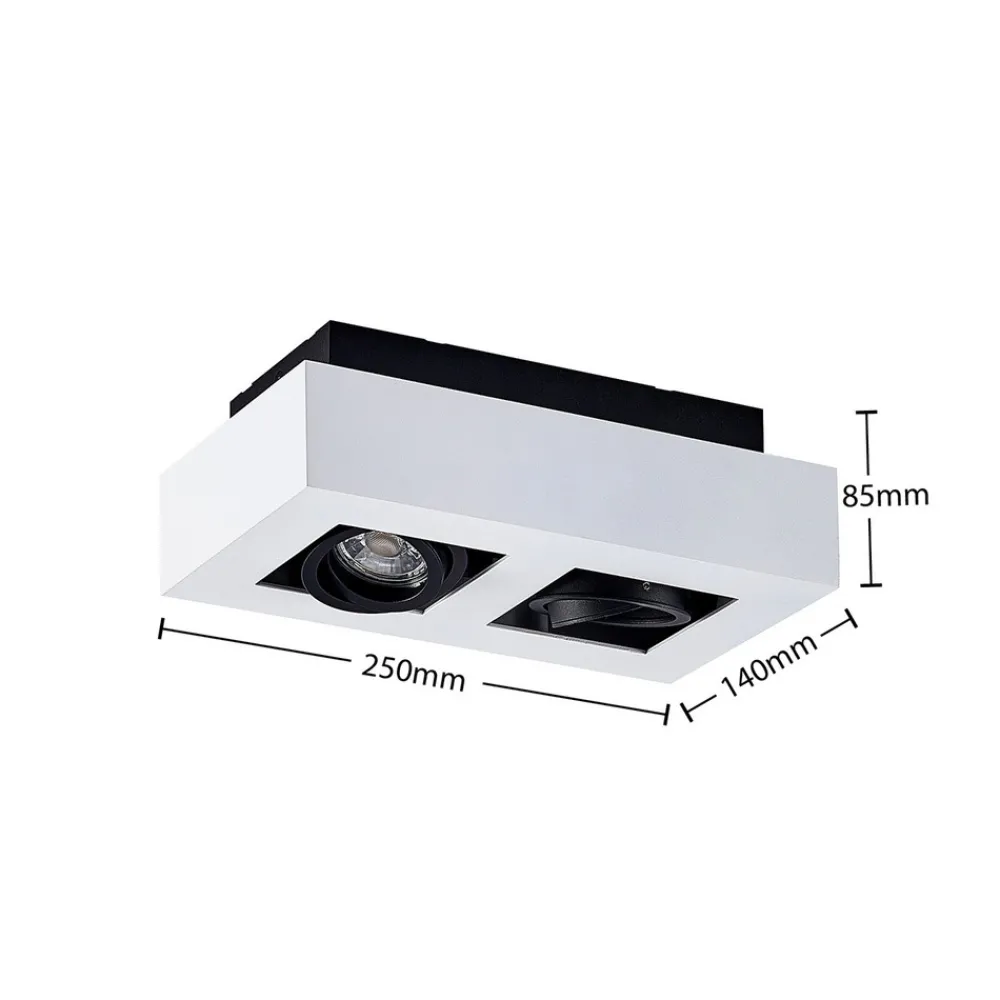 Hvit Vince taklampe med to svingbare lyskilder Vince taklampe er tydelig definert av sin lineære form og har en moderne, minimalistisk design som passer både til privat og kommersiell bruk. Fargeskjemaet på metallhuset er bevisst valgt for å være enkelt, slik at armaturen lett kan integreres i ulike interiører. Takket være de svingbare lyskildene kan lysretningen endres etter ønske, slik at et bestemt område i rommet eller en bestemt gjenstand kan fremheves på en stilfull måte. GU10-fatningen kan utstyres med energibesparende LED-pærer, som kan bestilles som tilbehør.