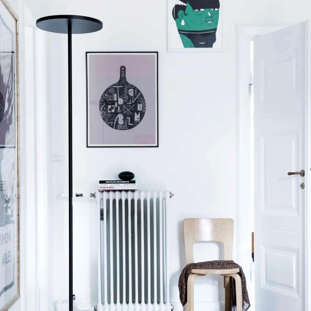 Athena LED frittstående armatur – varmhvit takflom med minimalistisk design Athena er en frittstående armatur med indirekte, diffust lys. Lyskasteren kjennetegnes først og fremst av det lille fotavtrykket og den diskré, minimalistiske designen. To tynne, runde skiver utgjør basen og armaturens hode, mens en slank, rett rammestang danner forbindelsen. Tidløshet, enkelhet og eleganse gjør gulvlampen til et belysningsobjekt som kan brukes i moderne, offentlige og private miljøer, og som ikke går av moten selv etter mange år. Den japanske designeren Naoto Fukasawa designer produkter for en lang rekke internasjonalt anerkjente merker. Gulvlampen Athena er designet for det italienske selskapet Artemide. Den verdensomspennende produsenten av designerlamper har utviklet seg siden grunnleggelsen i 1960 og har i dag egne produksjonsanlegg, glassfabrikker og et forskningssenter – utstyrt med berøringsdimmer