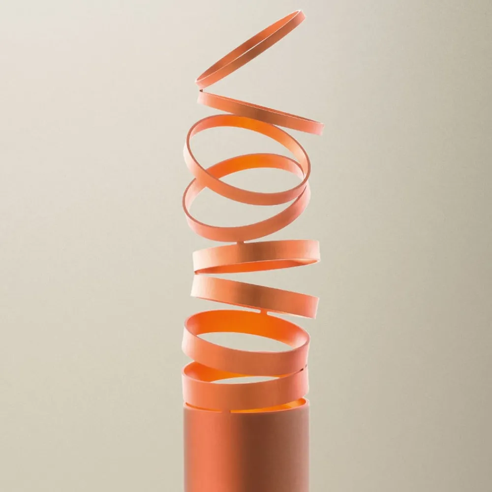 Fargelakkert gulvlampe Decomposé – et høydepunkt innen moderne designkunst Uansett hvor denne gulvlampen plasseres, om det er i stuen i sittegruppen eller som en innbydende lyskilde i gangen, er Decomposé et blikkfang både når den er slått av og når den lyser. En av grunnene til dette er den uvanlige formen. Her er et enkelt aluminiumsrør kuttet i ringer i den øvre enden, slik at det ser ut som en serpentinrull som løser seg opp. Dette gjenspeiles også i navnet Decomposé. Decomposé kommer fra fransk og betyr «oppløsning» på tysk. Når lyset slås på, skapes det en svært effektfull lysatmosfære med skygger i omgivelsene. Decomposé – et designobjekt fra Atelier Oï i Sveits – produseres av den italienske belysningsprodusenten Artemide. Atelier Oï ble grunnlagt i 1991 av Armand Louis, Patrick Reymond og Aurel Aebi. De har en svært eksperimentell tilnærming til arbeidet sitt og følger gjerne mottoet «form follows material», fordi de først og fremst interesserer seg for materialet de arbeider med, og deretter utvikler designen – made in Italy