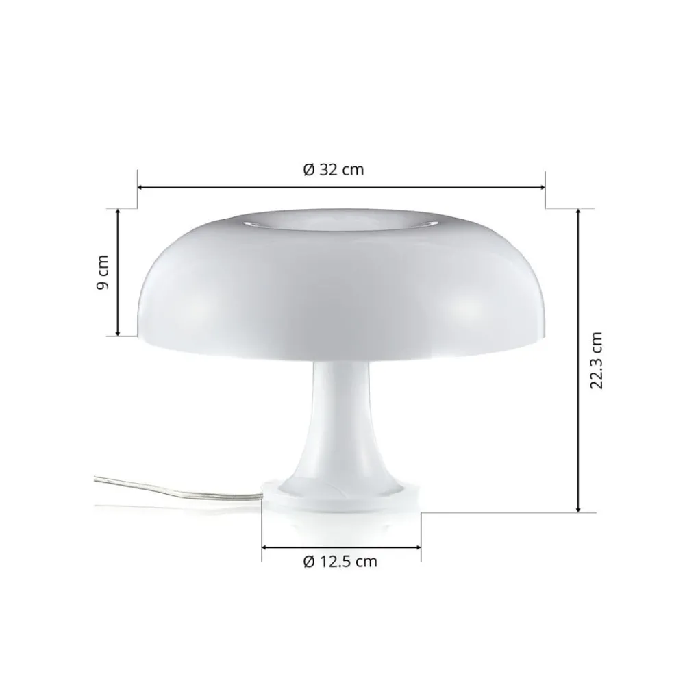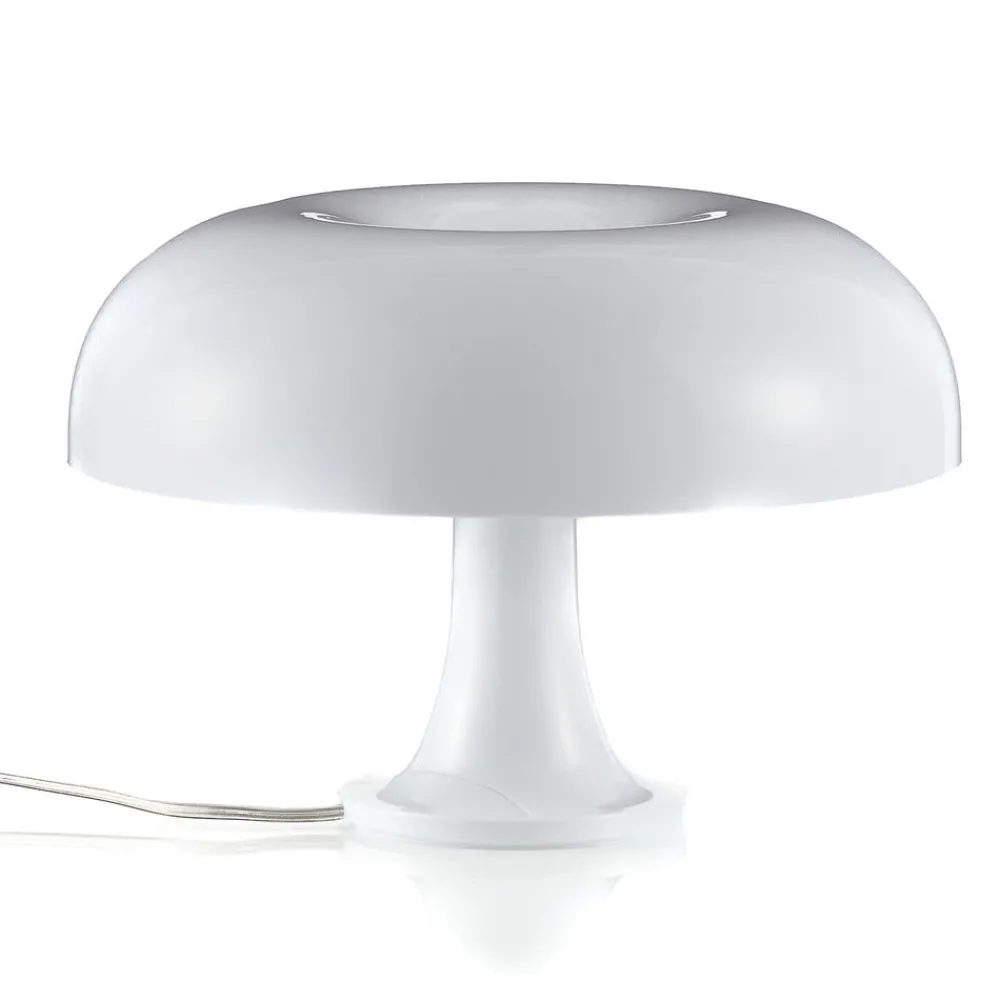Gammel design – ny prakt: Nessino designerbordlampe fra Artemide Denne bordlampen viser hvor tidløs design kan være: Nessino-modellen er lillesøsteren til bordlampen Nesso. Nesso ble utviklet på 1960-tallet av designeren Giancarlo Mattioli og Gruppo Architetti Urbanisti Città Nuova. Den sopplignende formen og plastkroppen indikerer tydelig at den ble skapt i dette tiåret. Likevel er Nessino, den nye utgaven av Nesso, fortsatt et moderne og tiltalende innredningsobjekt i dag. Både sokkelen og skjermen på Nessino er laget av sprøytestøpt polykarbonat. Under lampeskjermen er det fire pærefatninger. Den halvkuleformede skjermen sørger for at lyset avgis blendingsfritt og indirekte til omgivelsene. Den italienske designeren Giancarlo Mattioli (1933 – 2018) oppnådde stor berømmelse på 1950- og 1960-tallet med bordlampen Nesso, som i dag er utstilt på flere store museer, blant annet MoMA i New York.
