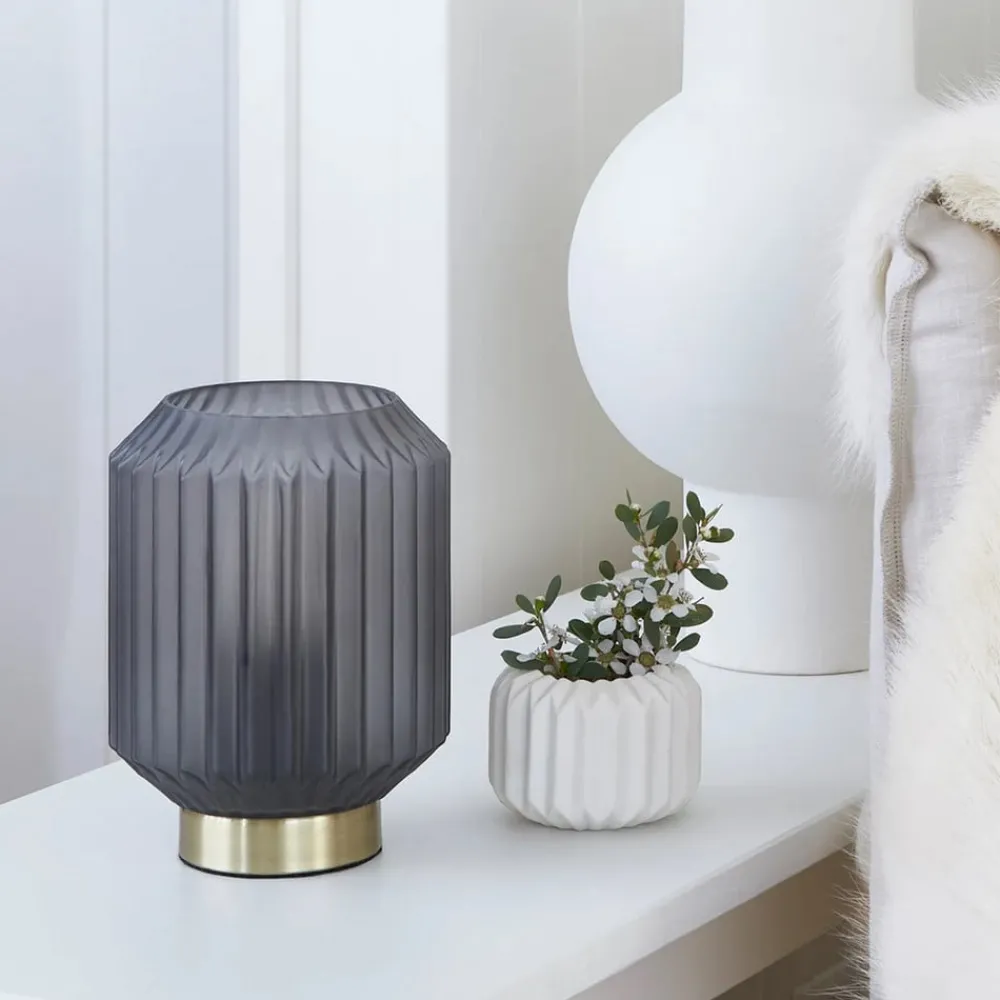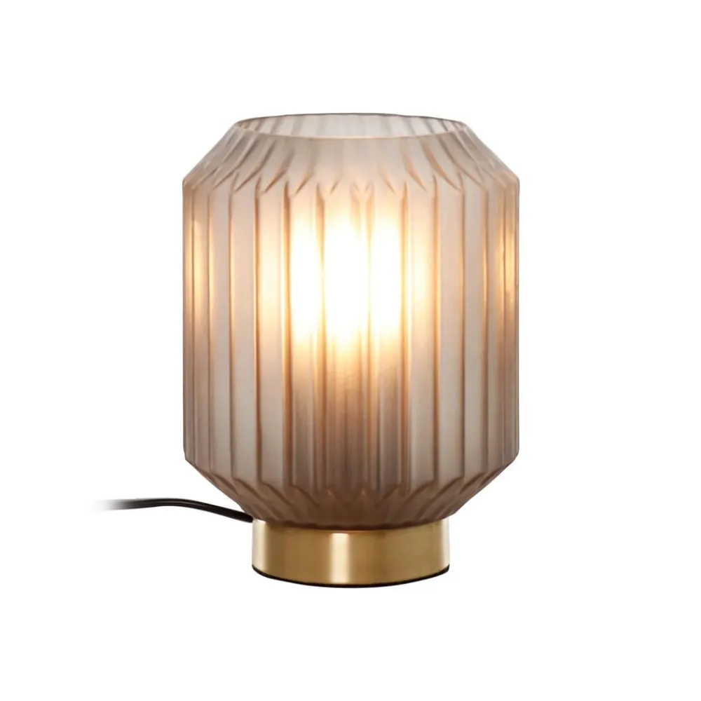Beacon bordlampe Clancy, skjerm i røykgrått glass, høyde 17 cm