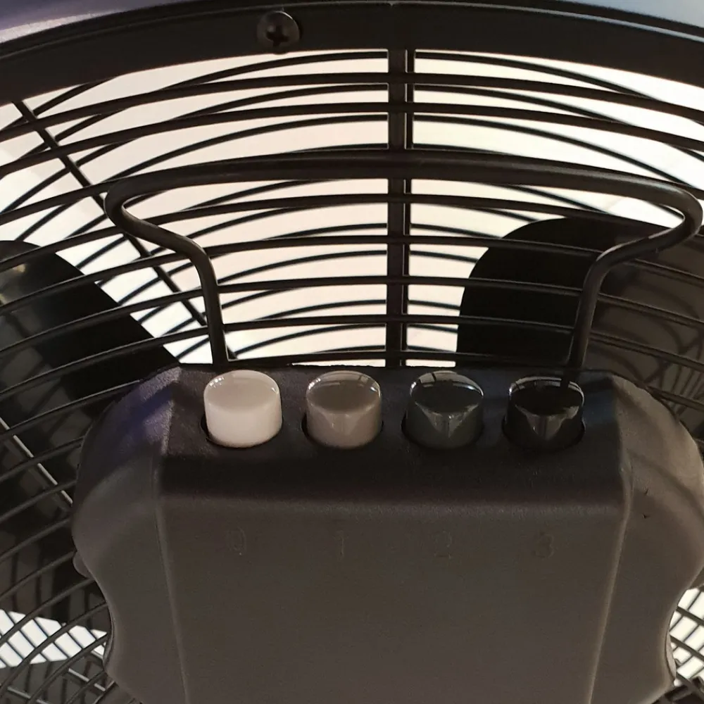 Fire trykknapper på baksiden er tilgjengelige for å slå av Breeze eller for å velge ett av de tre hastighetsnivåene.