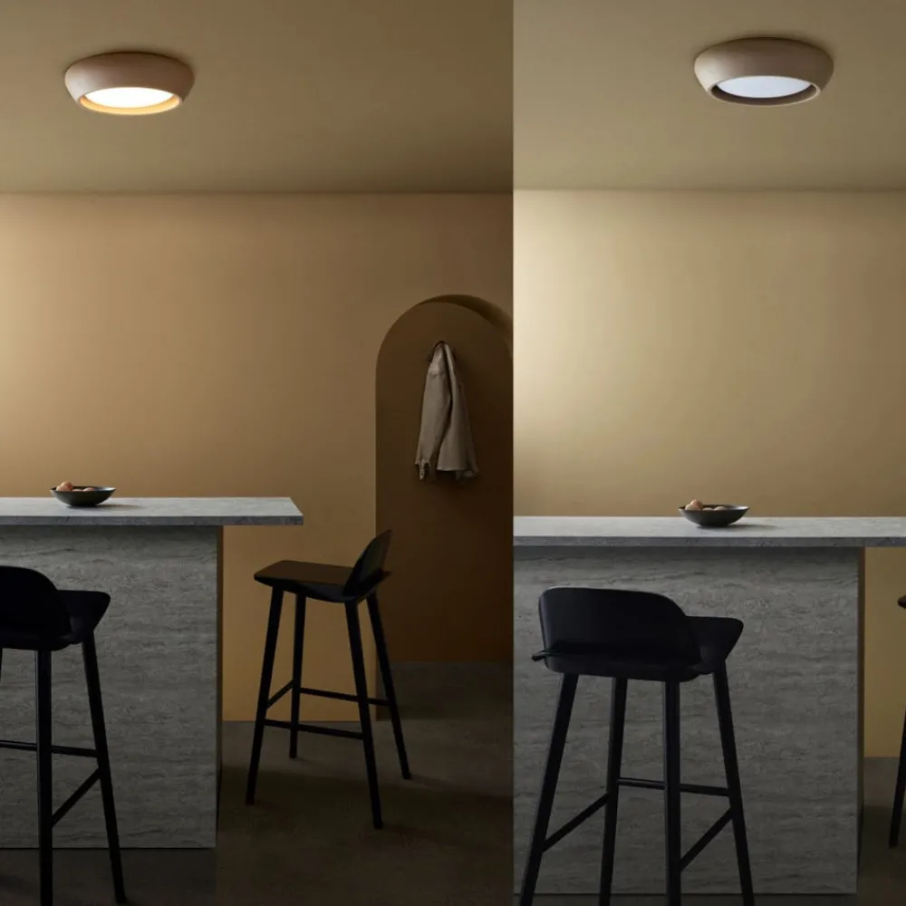 Fjord taklampe i gips – eleganse og fleksibilitet for alle rom Fjord taklampe kombinerer enkel eleganse med funksjonell fleksibilitet. Den er laget av gips av høy kvalitet, og føyer seg sømløst inn i estetikken i stuen, soverommet, gangen eller kjøkkenet. Muligheten til å regulere lysintensiteten ved hjelp av en ekstern dimmer gjør det mulig å tilpasse belysningen til enhver situasjon. Taklampen må monteres med GX53 LED-pærer med en maksimal diameter på 20 cm.