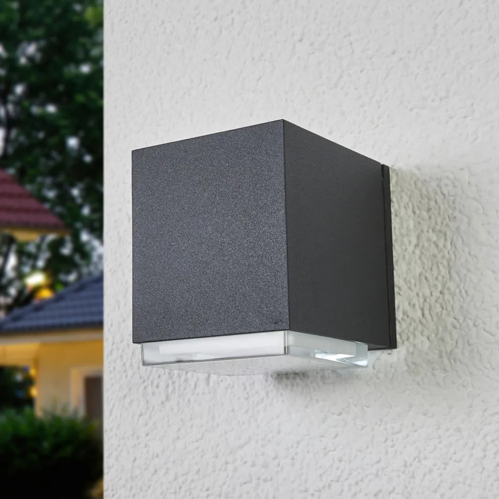 Terningformet, utendørs LED-vegglampe 33405K3, med nedadrettet lys