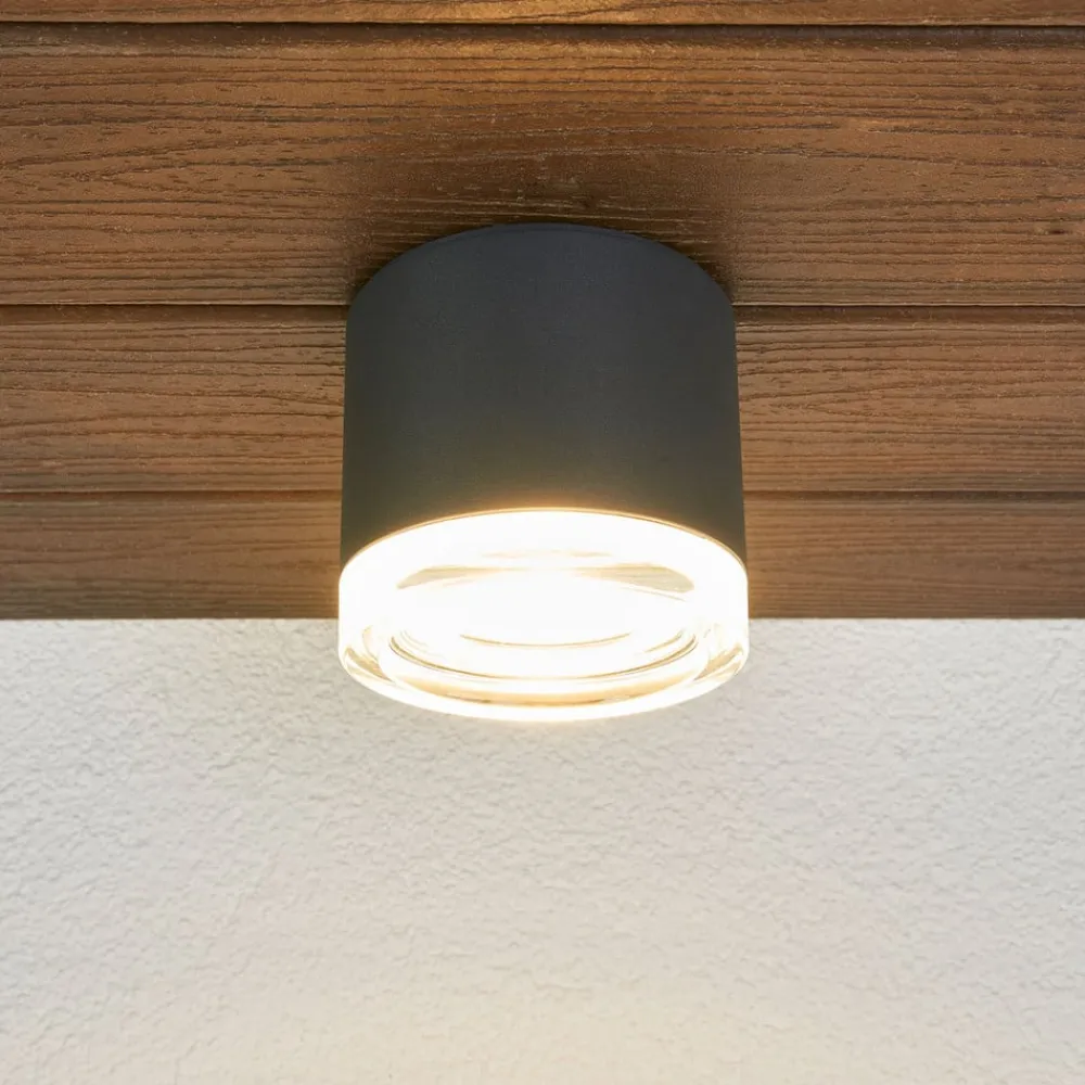 LED-takspot 66056K3 for utenpåliggende montering i taket sender lyset nedover i en vinkel på 62°. Takket være det delvis matte krystallglasset sendes en stor del av lyset vertikalt. Slik oppstår et behagelig lysspill med mange fasetter. LED-taklampen 66056K3 er en energieffektiv lampe som passer inn på mange områder. Den kan like gjerne monteres utenfor boligen som utenfor offentlige bygg eller forretningsbygg. Denne spotten i grafittgrå lakkering genererer et varmhvitt lys. Takket være kapslingsgrad IP65 tåler den all slags vær. Moderne LED-teknologi og førsteklasses utførelse gjør at dette er en effektiv, utendørs lyskilde med lang levetid.