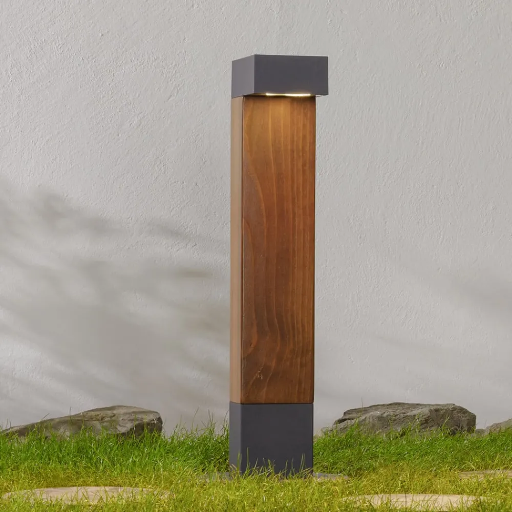 LED-pullertlampe i tre og aluminium, IP65, med skrusokkel Den høykvalitets LED-pullertlampen er laget av Accoya-tre, aluminium og rustfritt stål. Denne kombinasjonen utstråler holdbarhet, modernitet og eleganse og tyder på et gjennomtenkt produkt. Den spesielle BEGA Unidure-beleggteknologien sikrer lang holdbarhet, ettersom det er et ekstremt værbestandig pulverlakk. Det elegante og naturlige utseendet gjør at armaturen tar seg godt ut overalt utendørs, noe den blant annet er velegnet til takket være den høye kapslingsgraden IP65. Med sine varmhvite LED-lamper gir stibelysningen en jevn og blendingsfri belysning av bakken, og takket være den nedadvendte reflektoren rettes lyset nøyaktig dit det trengs. Det medfølger også en påskrudd stålsokkel som er varmgalvanisert og egnet til å montere armaturen på et fundament fra kunden eller et annet fast underlag, for eksempel belegningsstein. Denne armaturen kombinerer funksjonalitet og estetikk og gir trygg belysning av hagen og gangveier i mørket. – egnet for gjennomkobling – med BEGA Thermal Switch – midlertidig termisk utkobling for å beskytte temperaturfølsomme komponenter