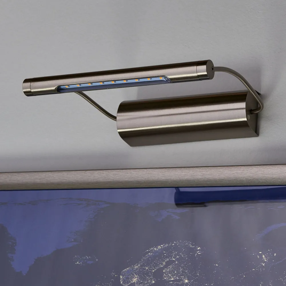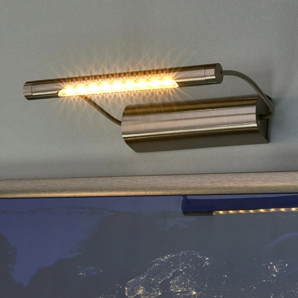 Tommy scorer poeng med to spesielle trekk: På den ene siden har bildelampen lyssterke, hvite LED-lys, og på den andre siden er det ikke nødvendig med veggtilkobling for å lyse opp de vakre maleriene, fordi den får nødvendig strøm fra tre AA-batterier (følger ikke med). Med lampehus i børstet stål er belysningen like elegant og stilren som det som skal belyses. Lampene har en av- og påbryter på siden. Sidestolpene på lampen står fast og kan ikke vippes eller justeres.