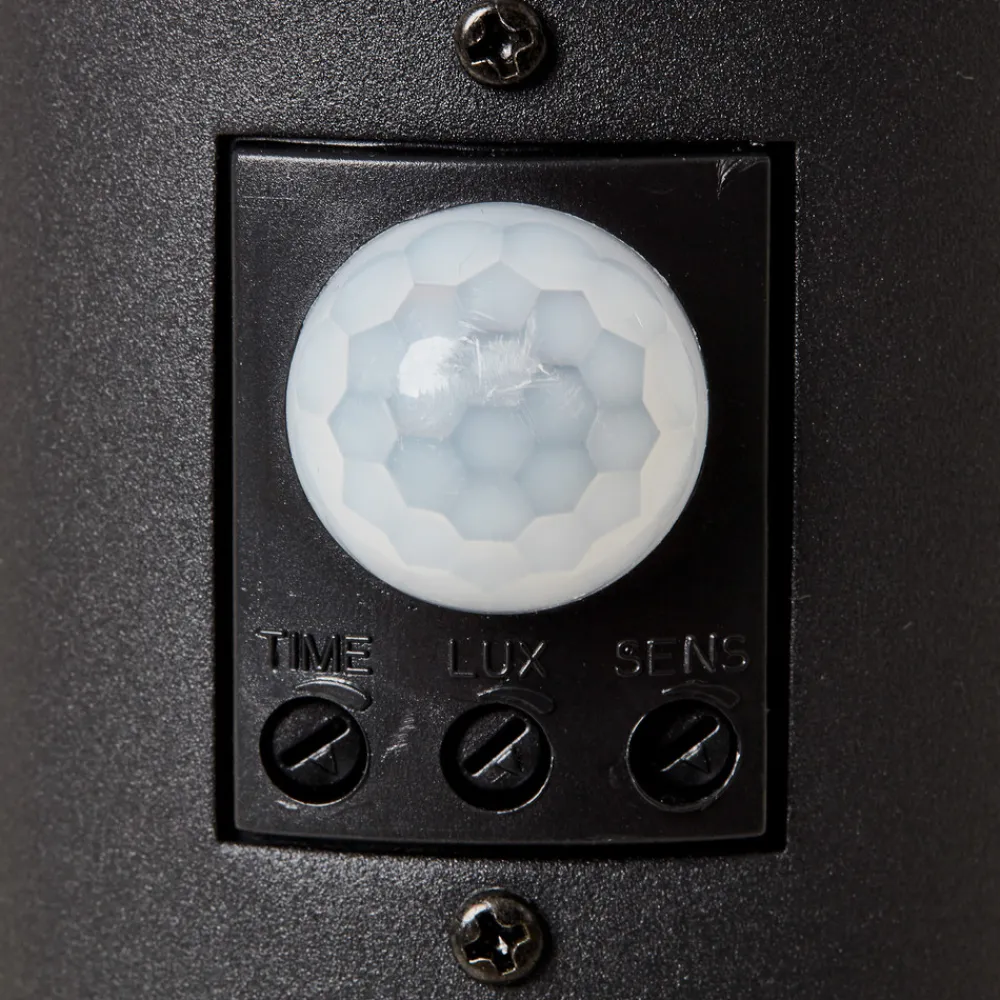 Dody sokkellampe i svart med bevegelsessensor Dody sokkellampe er laget for sokler i hagen og lyser opp både innkjørsler og uteplasser. Lampen er laget av rustfritt rustfritt stål og er utstyrt med en plastskjerm. Den integrerte E27-fatningen kan utstyres med LED-pærer (maks. 20 W). Leveres inkludert monteringsmateriell – Rekkevidde for bevegelsessensor maks. 8 meter – Justerbar lysvarighet fra 10 til 300 sekunder – Justerbar responslysstyrke