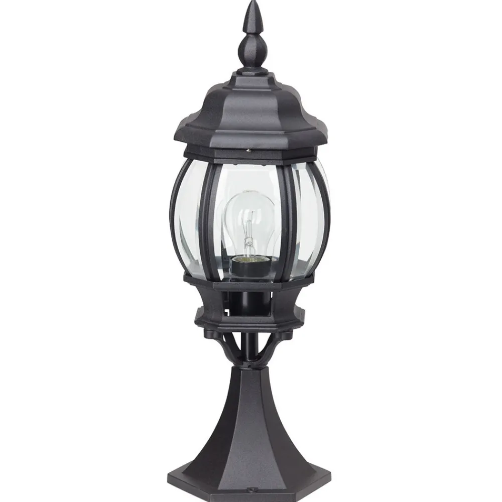 Istria sokkellampe: stilig lys utendørs Formen og utseendet på denne lampen er designet i en antikk stil og ser elegant og klassisk ut takket være bruken av svart metall. I tillegg til det trykkstøpte aluminiumet er også det gjennomskinnelige glasset på lampen av imponerende kvalitet. Det er også mulig å bruke moderne LED-pærer i sokkellampen Istria.