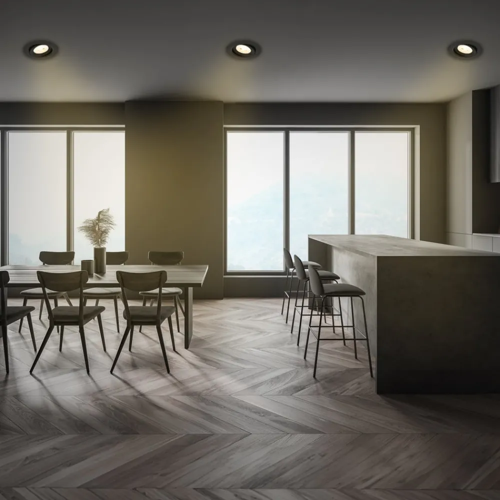 Praktisk Desi LED-lys – kan brukes som innfellingslampe eller påbyggingslampe Den lille, runde Desi LED-lyset kan brukes både som innfellingslampe og som påbyggingslampe. Den indre delen av armaturen kan svinges. Den kan brukes i nesten alle rom i huset.