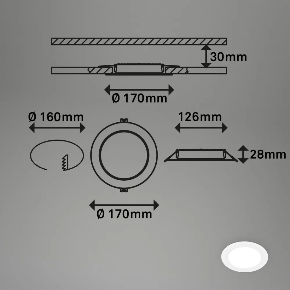 Briloner LED innfellingslampe Jeft, Ø 17 cm, hvit, 4000K, dimbar Sale