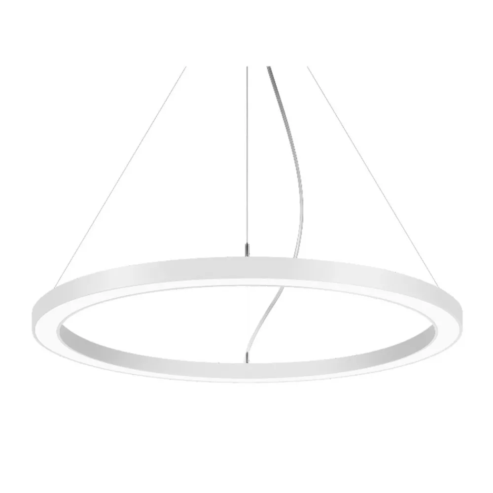Biro Circle Ring5 LED-pendel med baldakin, Ø 75 cm, opp/ned, koblingsbar Biro Circle Ring er en LED-pendel med ringformet aluminiumsskjerm, spesielt designet for kontorer og konferanserom. Opalhvite plastdeksler sørger for at lyset fra LED-lampene i ringen fordeles optimalt oppover og nedover. Opphenget skjer ved hjelp av fine stålkabler som ender i den runde baldakinen – Lysavgivelse 70 % direkte, 30 % indirekte – Med rotasjonssymmetrisk, dyp lysfordeling – Generell fargegjengivelsesindeks CRI > 80 – Levetid L70/B50 ved 25 °C: 276. 000 timer, levetid L80/B50 ved 25 °C: 276. 000 timer.000 timer, levetid L80/B20 ved 25 °C: 153 000 timer – Husmateriale: aluminium / stål / plast – Tillatt omgivelsestemperatur (ta): -20 °C – +25 °C – Med elektronisk forkoblingsutstyr, koblingsbar, ikke dimbar