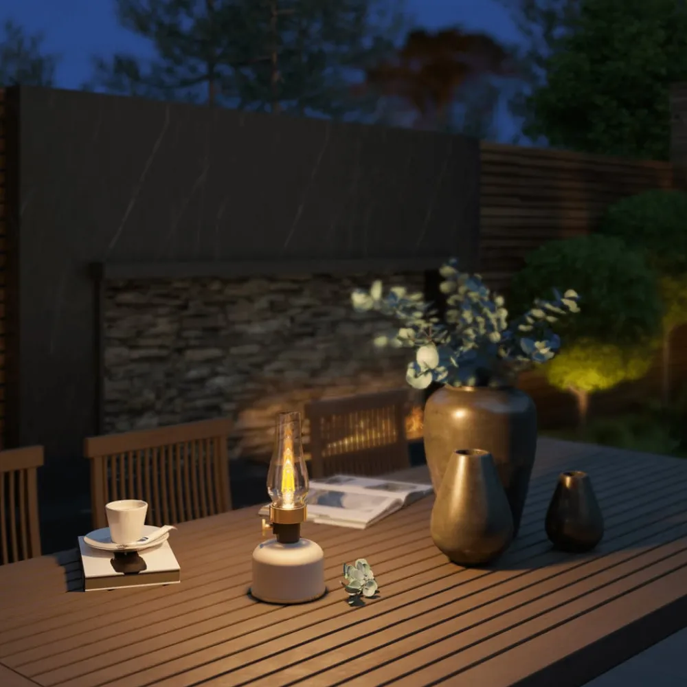 LED-bordlampen Lavinio kombinerer det tidløse designet til en oljelampe med moderne LED-teknologi. Det ekstra varmhvite, dimbare lyset skaper en koselig og stemningsfull atmosfære – ideelt for hjemmet, balkongen, hagen eller camping. Med det integrerte oppladbare batteriet kan du nyte stemningsfull belysning uten stikkontakt. Den kraftige 2x 2000mAh Li-Ion-batteriet gir opptil 8 timers lys etter bare 4–5 timers ladetid – kan brukes overalt. Lampen kan enkelt lades med det medfølgende USB-C-kabelet – ideelt for bruk hjemme eller på farten. Batteriet er utskiftbart, noe som forlenger lampens levetid ytterligere. Med den praktiske dreiebryteren kan du enkelt justere lysstyrken – fra dempet stemningsbelysning til funksjonelt lys. Lampen tilpasser seg dine behov og sørger alltid for riktig atmosfære.