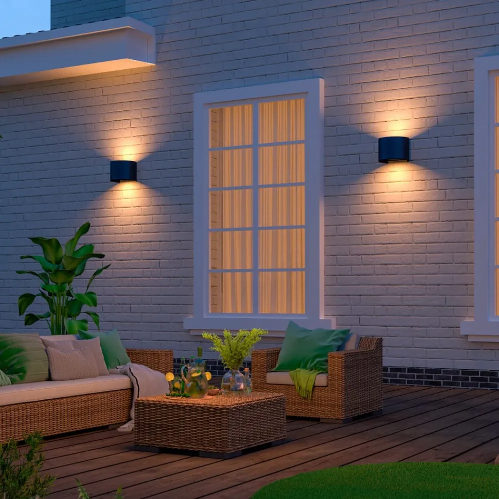 Halvrund utendørs LED-vegglampe Oval, lyser oppover og nedover