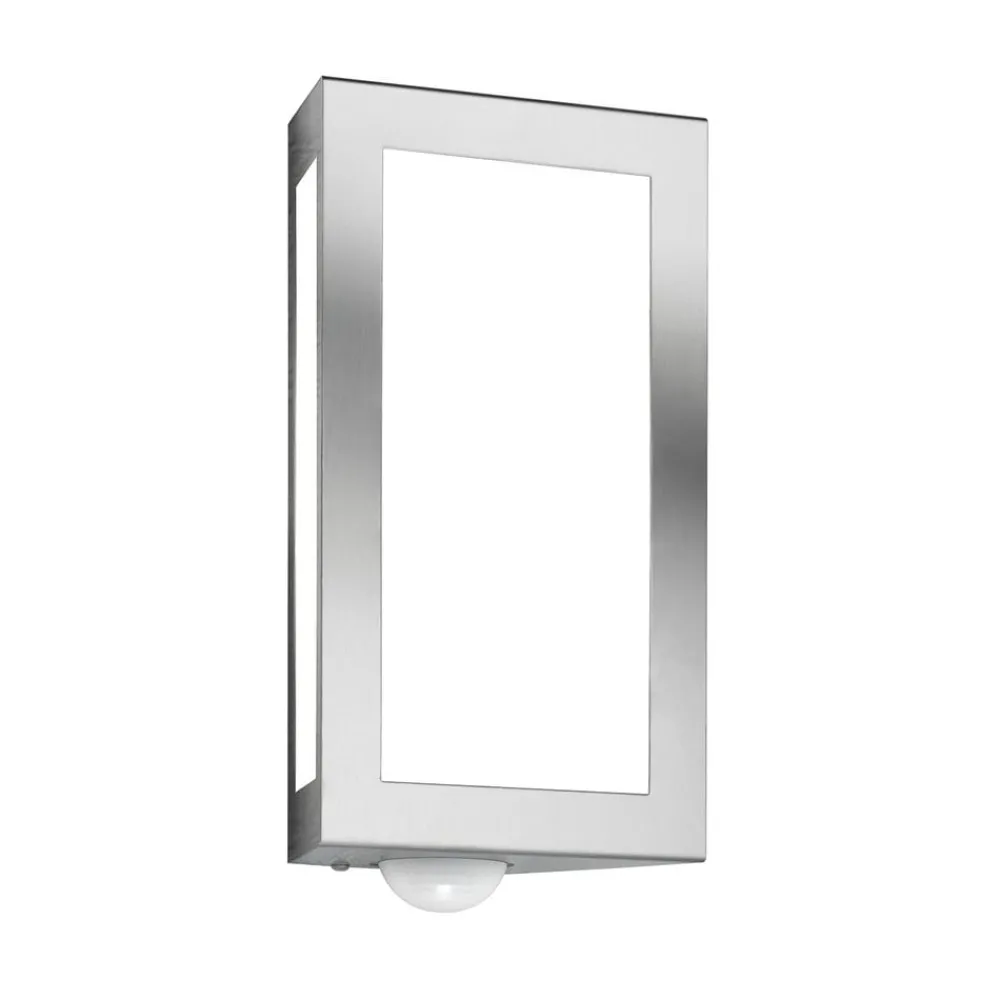 Kvadratisk utendørs vegglampe Long i børstet stål med bevegelsessensor
