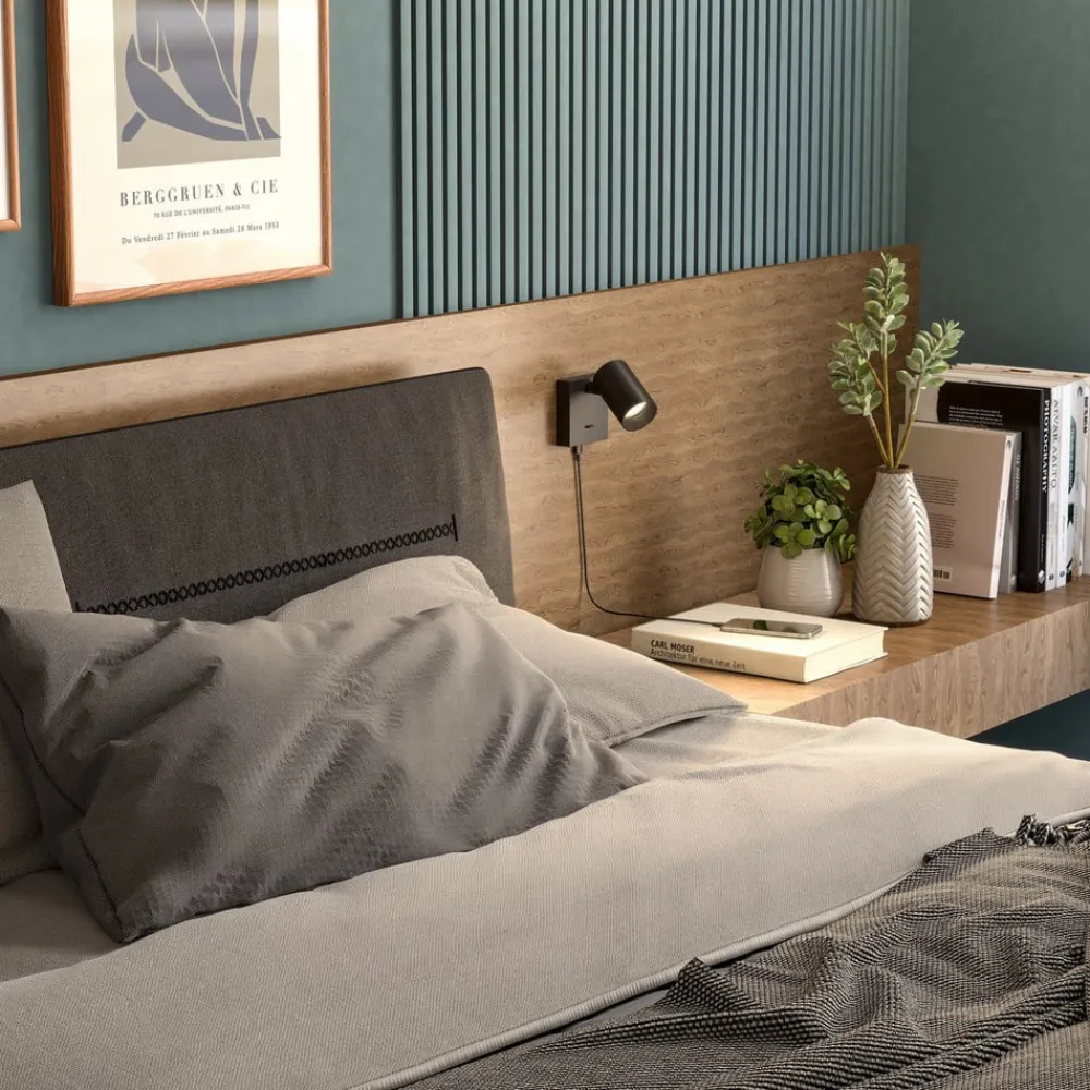 CAN TILT veggspot, svart, 10 x 10 cm, metall, USB-bryter