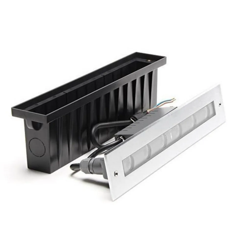LED-bakkespot Jeremia i rustfritt stål, inkl. innfelt boks Den langstrakte LED-bakkespotten Jeremia leveres inkludert LED-strømforsyningsenhet, innfelt boks i plast og 1 m tilkoblingskabel. Overflaten i børstet rustfritt stål gir den et svært moderne utseende. Kapslingsgrad IP67 beskytter armaturen mot inntrengning av smuss og vann. Generell informasjon om nedfelte gulvlamper: For å sikre at nedfelte gulvlamper holder lenge, bør det sørges for effektiv drenering og et egnet grusbed for drenering. Ikke installer nedfelte lamper i hulrom eller fordypninger – det skal ikke kunne samle seg stående vann på armaturen (eller i den innfelte boksen).