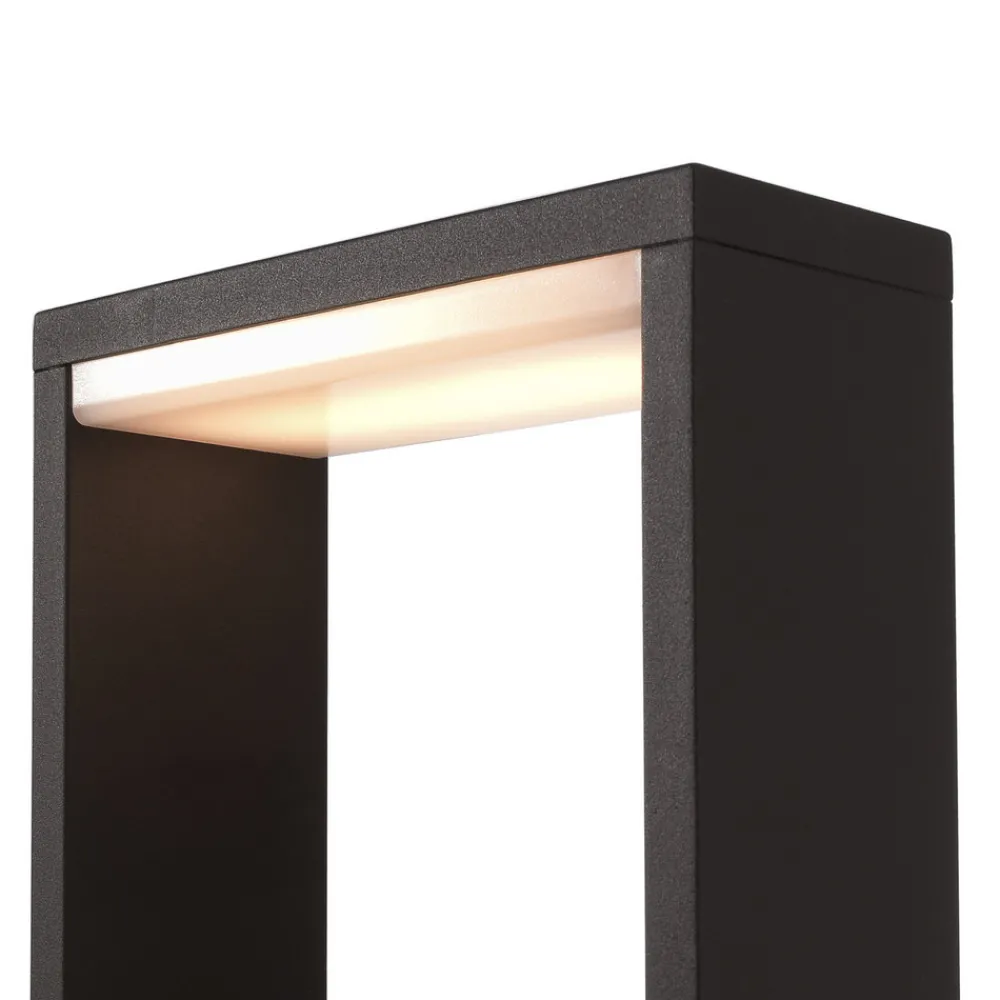 Cata IV sokkellampe er designet som et optisk behersket, antrasittfarget rektangel laget av støpt aluminium. LED-lampene er festet på undersiden av toppdelen bak et matt deksel. De avgir lyset i et bredt, diffust område nedover og sørger for et mykt opplyst miljø.