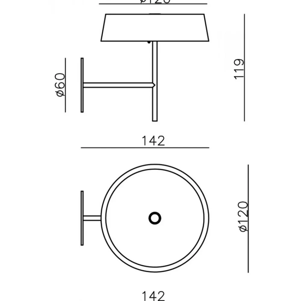 En bryter er innebygd i det runde hodet, der varmhvite lysdioder er installert og avgir lyset nedover uten blending. Dette kan brukes til kontinuerlig å dempe lysstyrken. Slå av og på er også mulig på stedet.