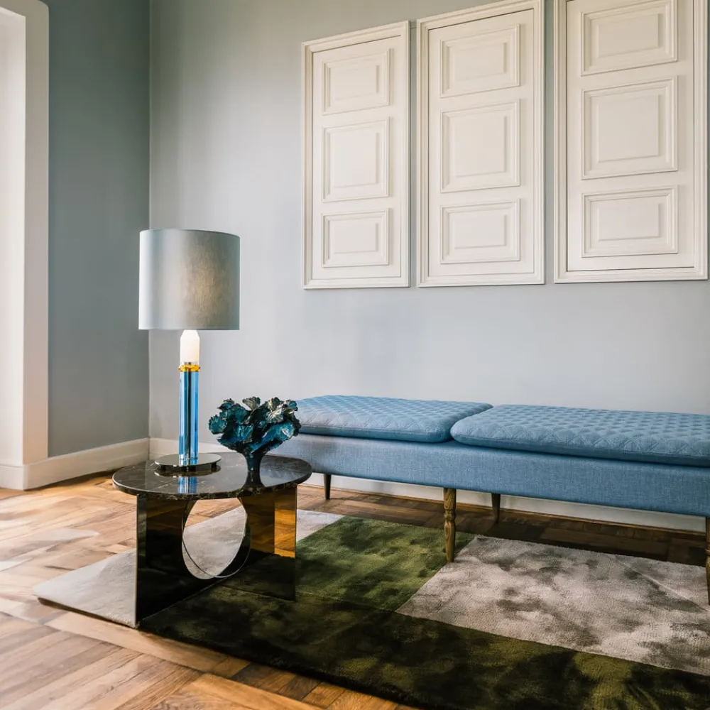 Belysningskonseptet Carnival 1: designbordlampe for stue og soverom Bordlampen Carnival 1 er et designstatement som beriker stuer og soverom med en unik lysatmosfære. Lampens stilrene design føyer seg sømløst inn i moderne innredningskonsepter og blir midtpunktet i ethvert rom. De nøye utvalgte materialene og den presise utførelsen understreker den høye kvaliteten på Carnival 1, mens den sofistikerte lysfordelingen sørger for en behagelig belysning som bidrar til både avslapning og økt produktivitet. Carnival 1 er mer enn bare en lyskilde; den er et uttrykk for stil og funksjon som har en positiv innvirkning på trivsel og humør. Enten det er i stuen som aksentbelysning eller på soverommet som leselampe – denne bordlampen tilpasser seg mange ulike behov og skaper en atmosfære som innbyr til opphold. Den har plass til en valgfri E27-pære (ikke inkludert, se tilbehør), og den vakre silkeskjermen er produsert i Danmark. Carnival-serien er utviklet av krystallglassspesialistene Reflections Copenhagen i samarbeid med Design By Us.