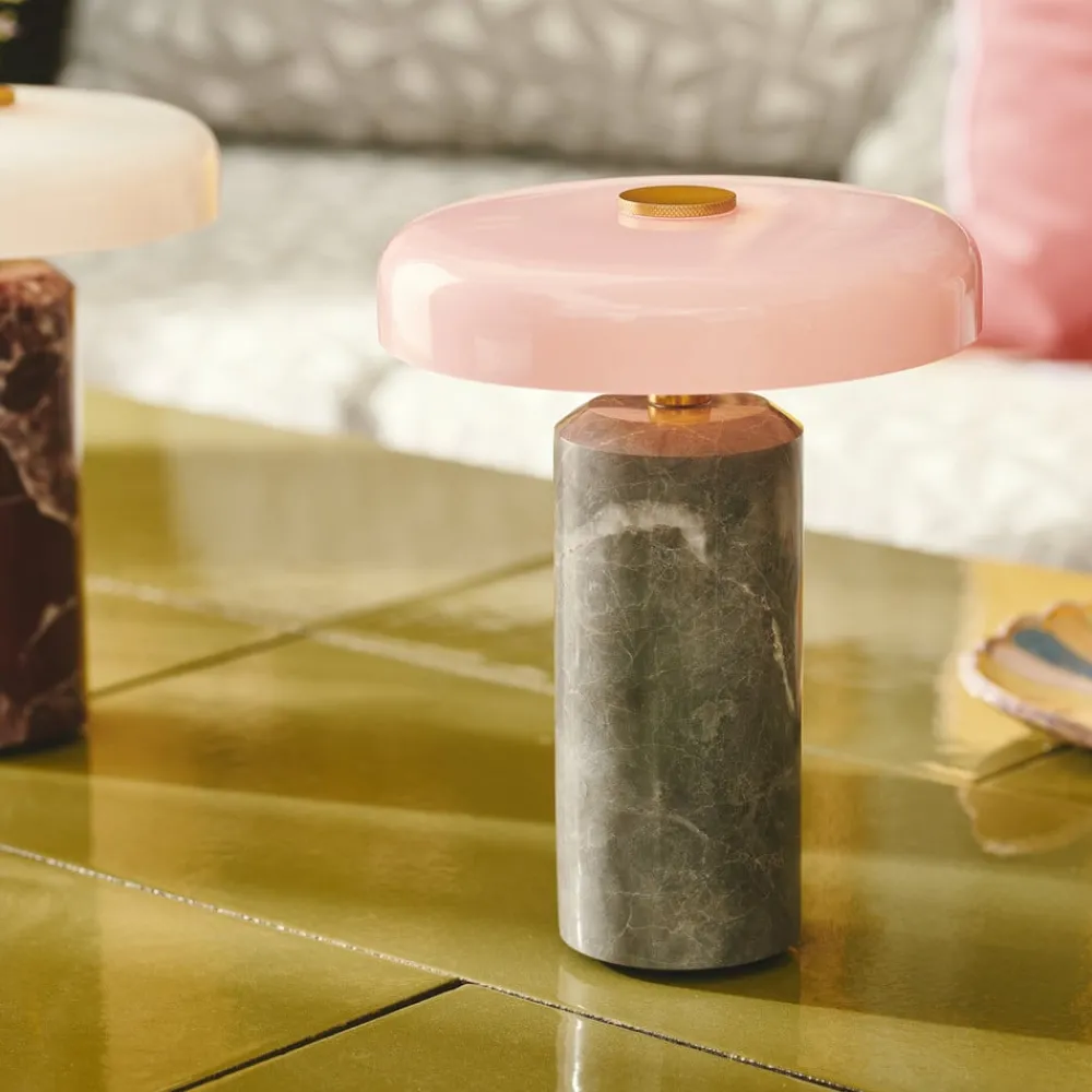 DESIGN BY US Trip LED oppladbar bordlampe, grå/rosa, marmor, glass, IP44| Dekorasjonsbelysning|Kommersiell Utebelysning