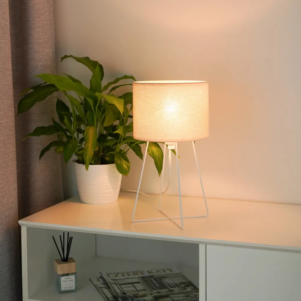 Bordlampe Trixi med trådramme hvit/beige, stoff, E14