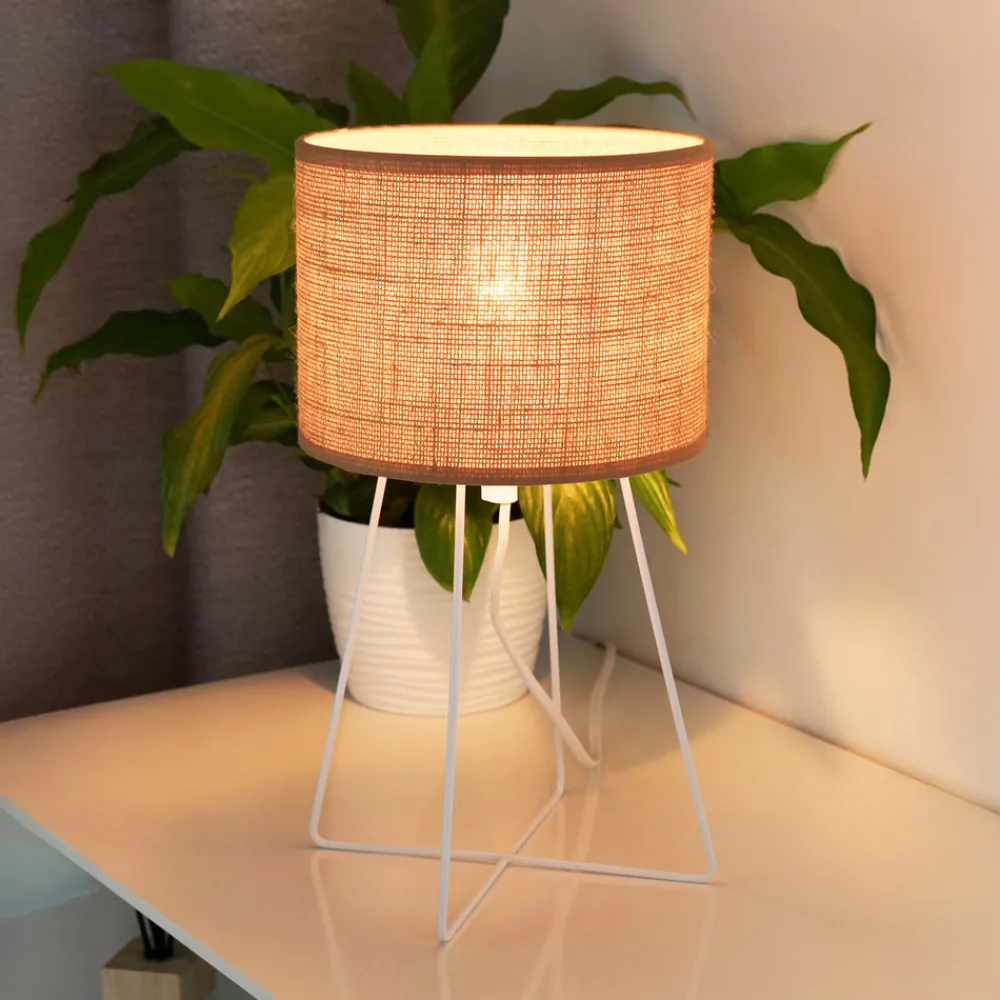 Bordlampe Trixi med trådramme hvit/beige, stoff, E14