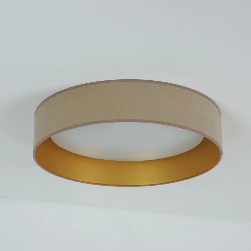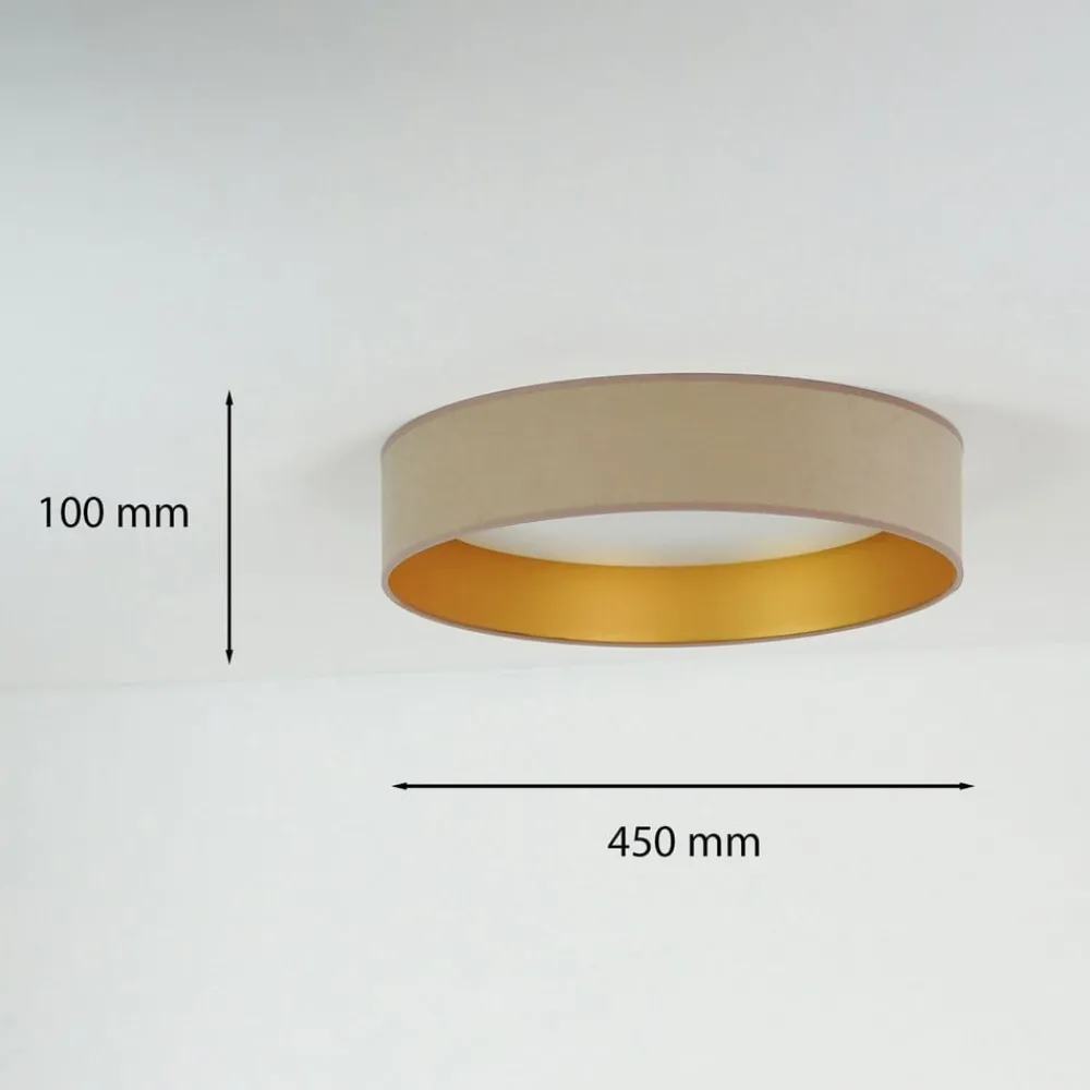 LED-taklampe Plafond, fløyel, beige/gull, stoff, Ø 45 cm, 3-trinns