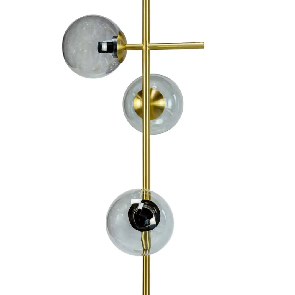 Grasiøs Como gulvlampe med røykgrå glasskjermer Det danske lampemerket Dyberg Larsen kombinerer skandinavisk stil med grasiøs eleganse i den firelysende gulvlampen Como. Det slanke, messingfargede stativet med rund lampefot er utstyrt med fire kuleformede skjermer i røykgrått glass og har en minimalistisk stil. Como kan brukes som en stilfull tilleggslampe i stuen, der den både kan gi stilfull belysning og fungere som et dekorativt innredningselement. For å få en behagelig og koselig belysning anbefaler produsenten å bruke en lyskilde med varmhvitt lys. Lyset fra disse lampene er behagelig og skaper en hjemmekoselig atmosfære som er ideell for oppholdsrom. Den danske belysningsprodusenten Dyberg Larsen ble grunnlagt i 2016 av Thomas Dyberg-Larsen. Selskapet produserer rimelige lamper av høy kvalitet til innendørs og utendørs bruk som imponerer med god kvalitet og skandinavisk design.