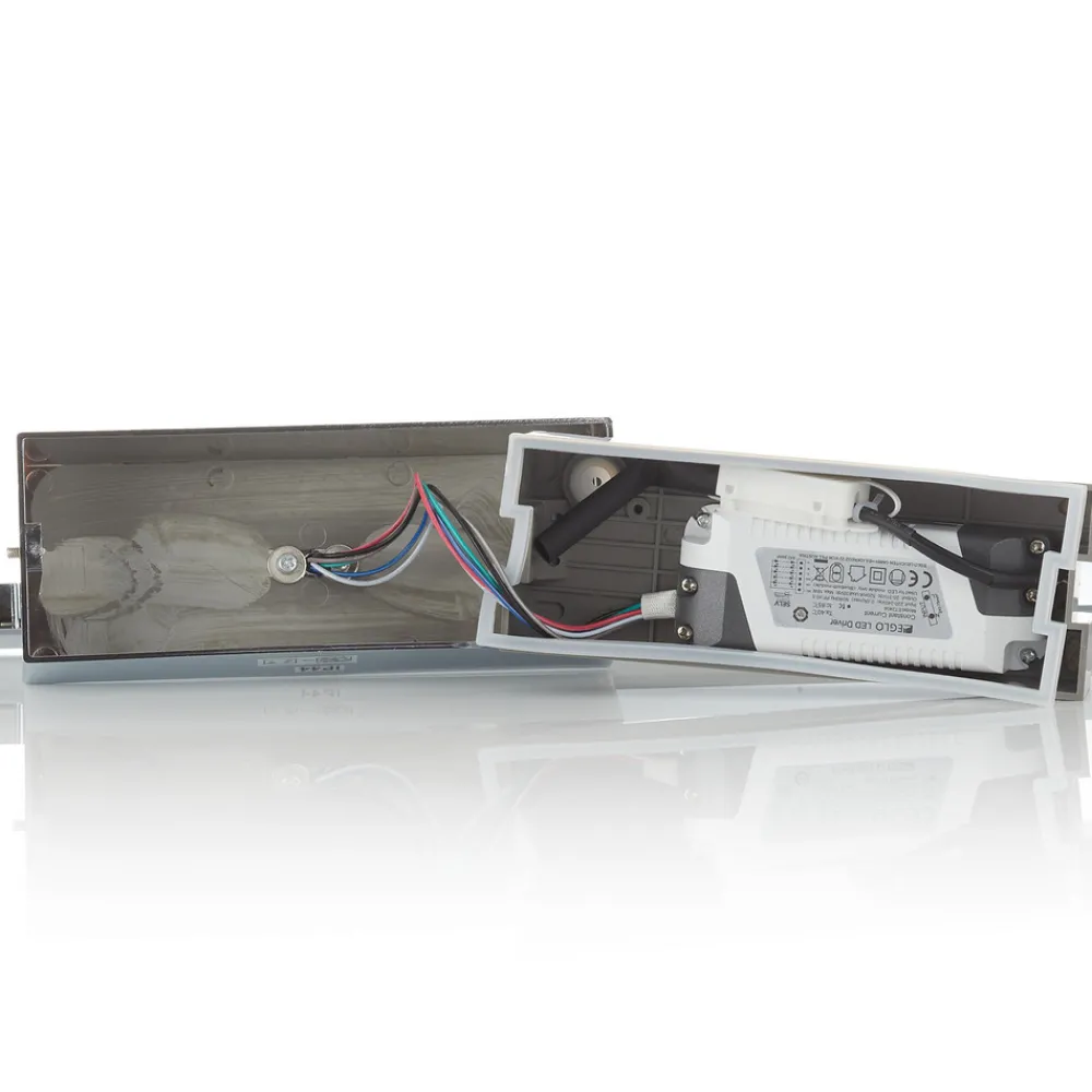 Det praktiske LED-speillampe Tabiano-C imponerer med sin slanke design og klare form. En plastdiffusor strekker seg over hele bredden, avgir et homogent, refleksfritt lys og sender det nedover. På grunn av den lett utstikkende formen på vegglampe , er et speil ideelt opplyst ovenfra, og takket være IP44 kan det brukes på badet uten å nøle.