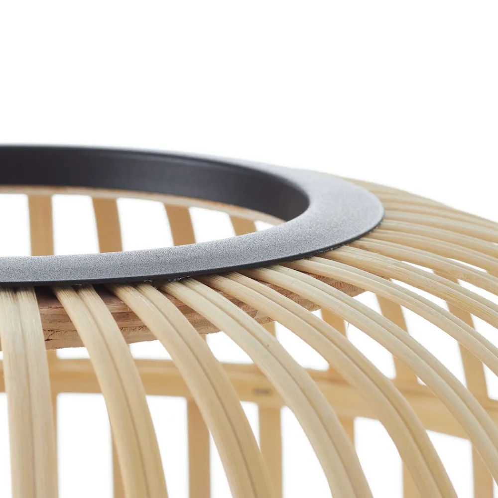 Fargekontrastene av lyst tre og de tre svarte bena av stål setter tiltalende aksenter. Dette gjør gulvlampe til et moderne tilbehør som skiller seg ut fra andre lamper takket være den spesielle formen. Som ekstra lys er det en berikelse i hvert rom og skaper en koselig glød.