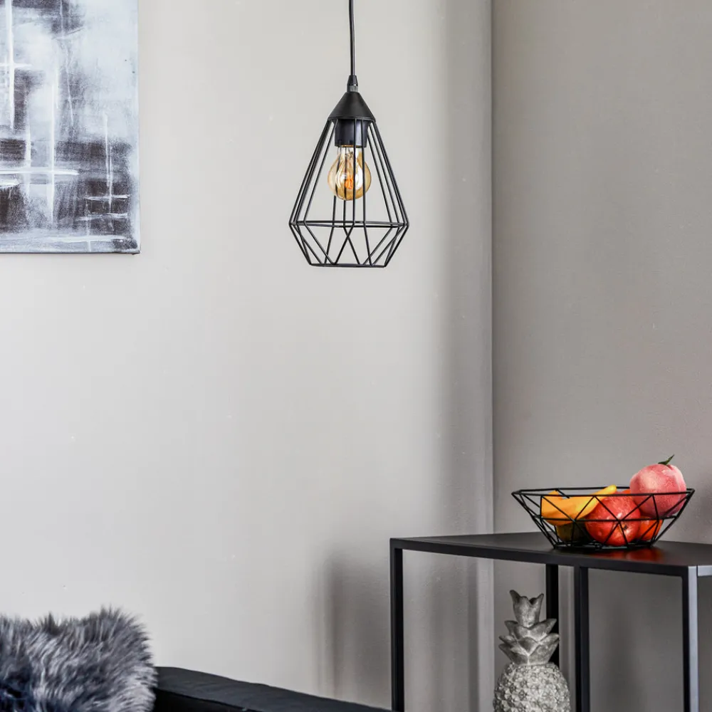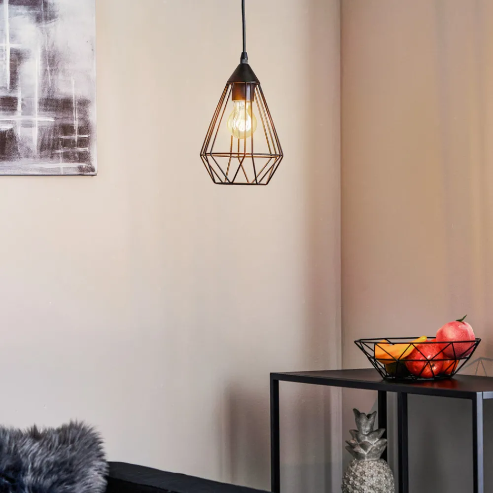 I vintage-desing kommer den svarte hengelampen Tarbes. Skjermen er designet åpent av enkelte metallpinner, slik at lyset kan ses utenfra og kan slippes ut i alle retninger, uten at en skjerm svekker lyset. Lampens dekorative utseende blir fullstendig når en klar lampe i filament-teknikk brukes som lyspære.