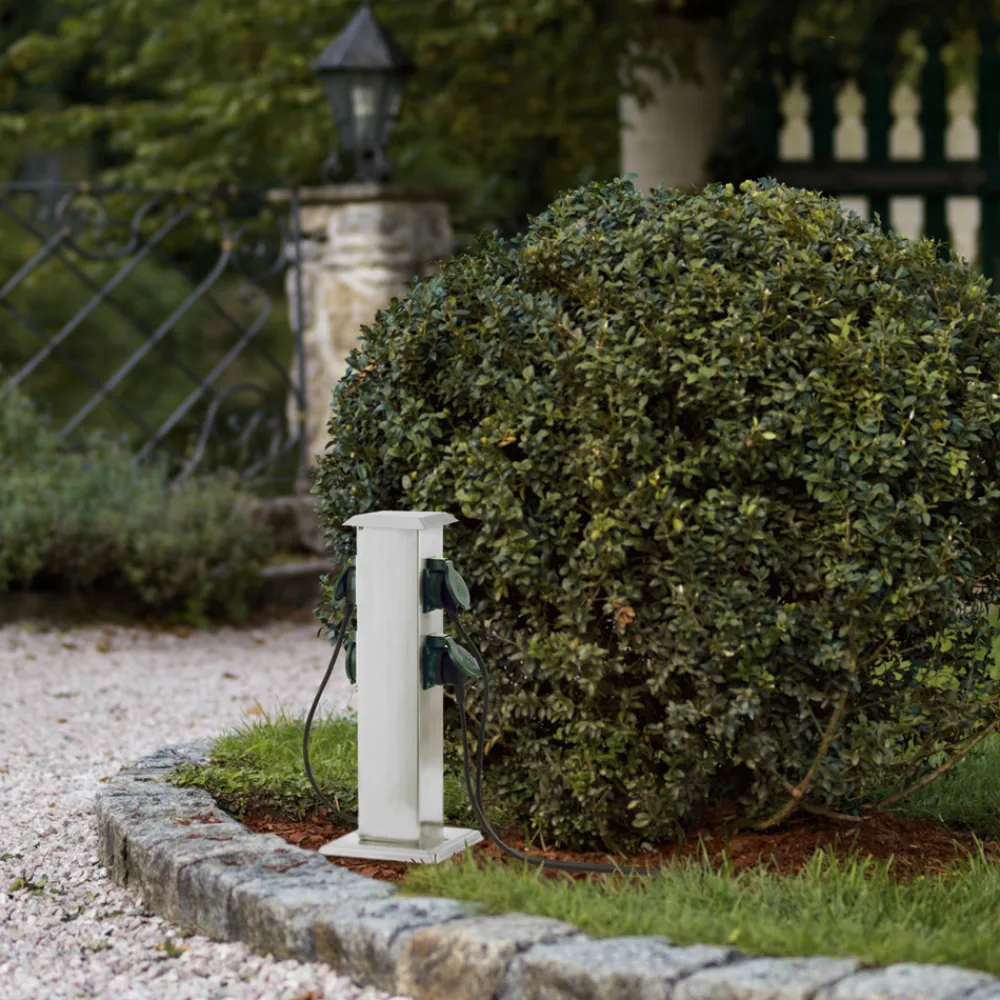 Stål stikkontaktkolonne PARK 4 for utendørs brukAldri mer skjøteledninger utendørs – med den firdoble stikkontakt…