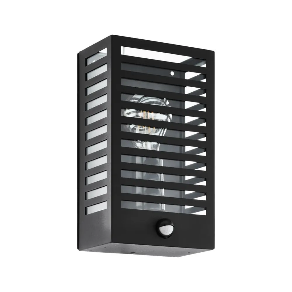 Utendørs vegglampe Alamonte 3, svart, med sensor