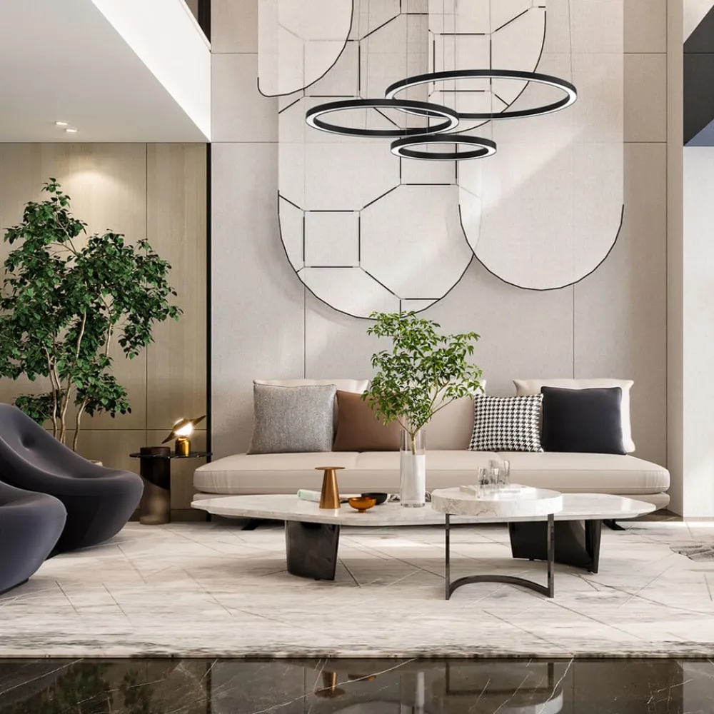 Elegant Galaxia LED-pendel med tre svarte ringer med variabel plassering Galaxia LED-pendel er utstyrt med tre ringer i ulike størrelser, der undersiden er utstyrt med hvite universal-LED-er bak satinert skjerm. Ringenes posisjon, opphengshøyde og helning kan bestemmes under installasjonen takket være avkortbare opphengstråder og fritt plasserbare opphengspunkter. Ideell for prestisjerom i offentlige områder/forretningsområder.